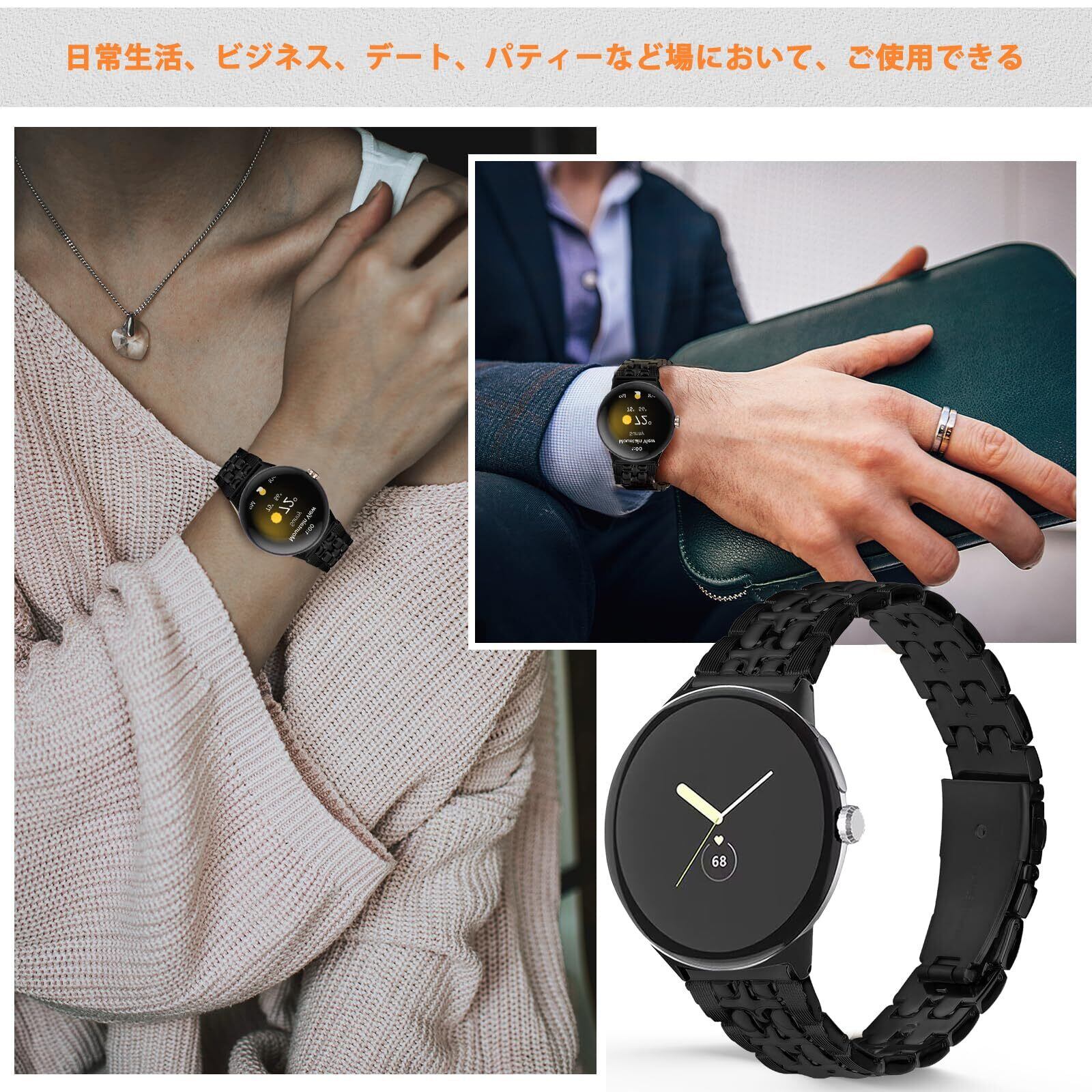 「対応機種」:Google Pixel Watch2/1に対応、ご注文のときにサイズなどをご確認してください。 (ご注意: 本品はバンドだけで、フィルムとケースとウォッチ本体などが含まれていません。)