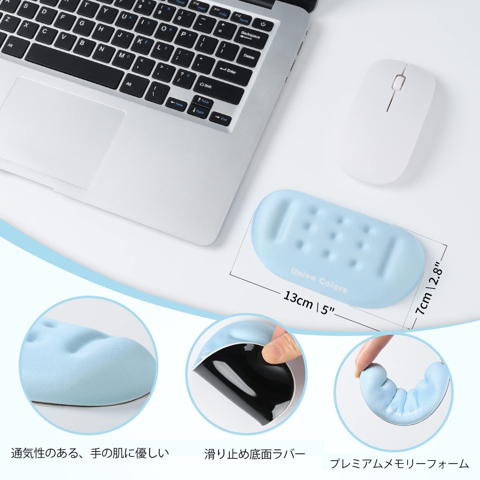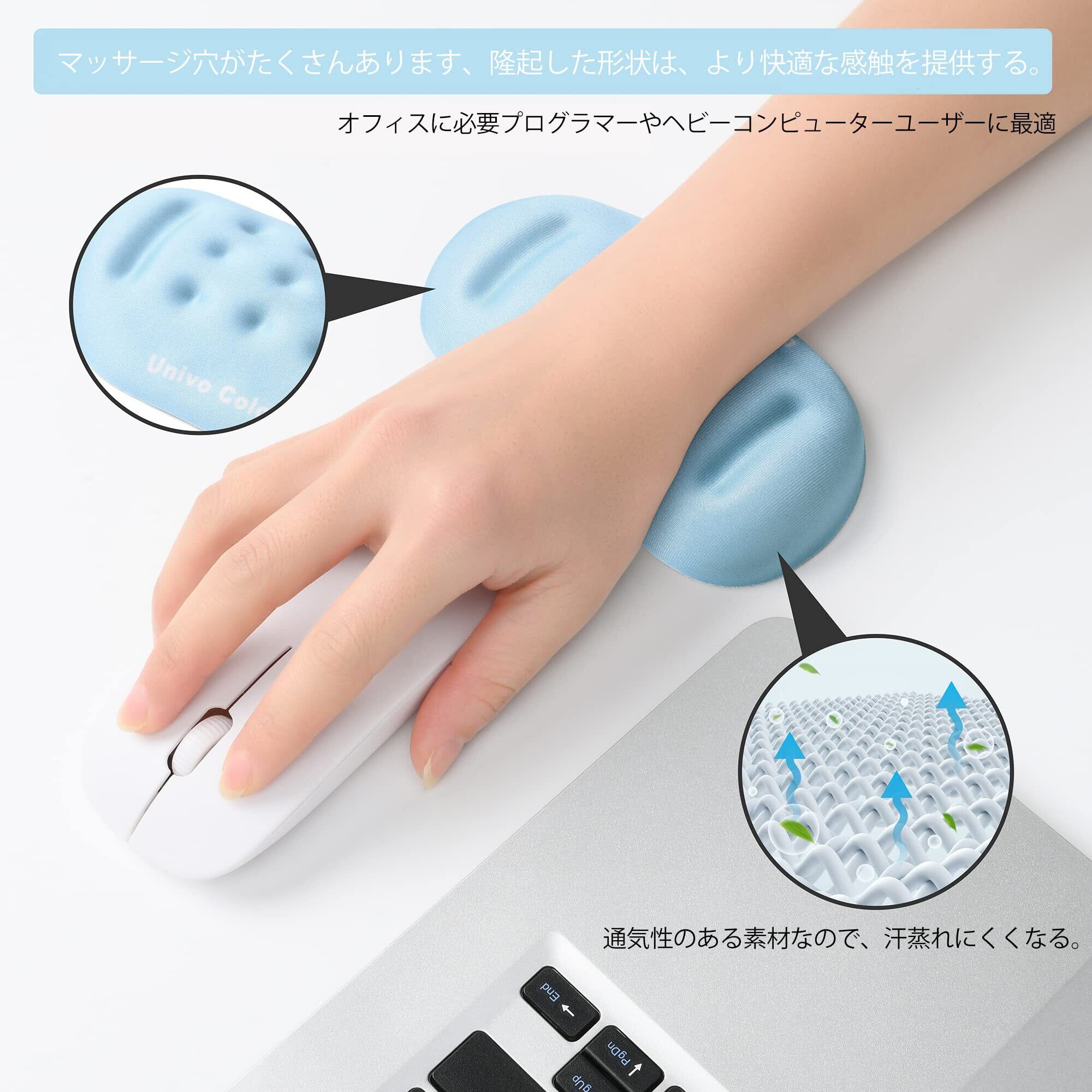 UnivoColors マウスリストレスト 手首置き 疲労低減 通気性 あり 肌に刺激なし 人間工学デザイン 柔らかい素材 ストレス解放 マッサージホール付き(ライトブルー)