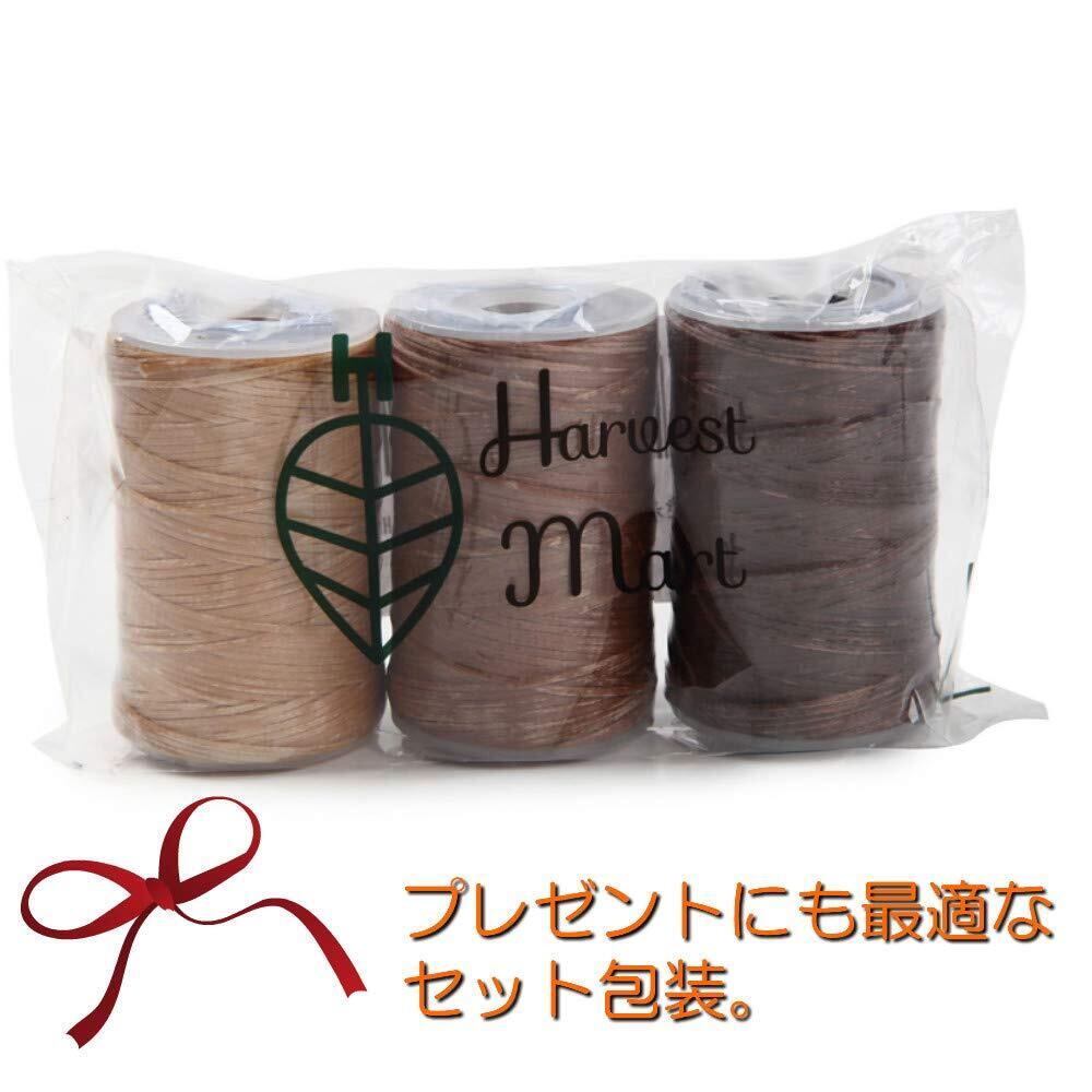 Harvestmart 蝋引き糸 ロウ引き糸 0.8mm レザークラフト糸 60m ワックスコード 3個セット ブラウン