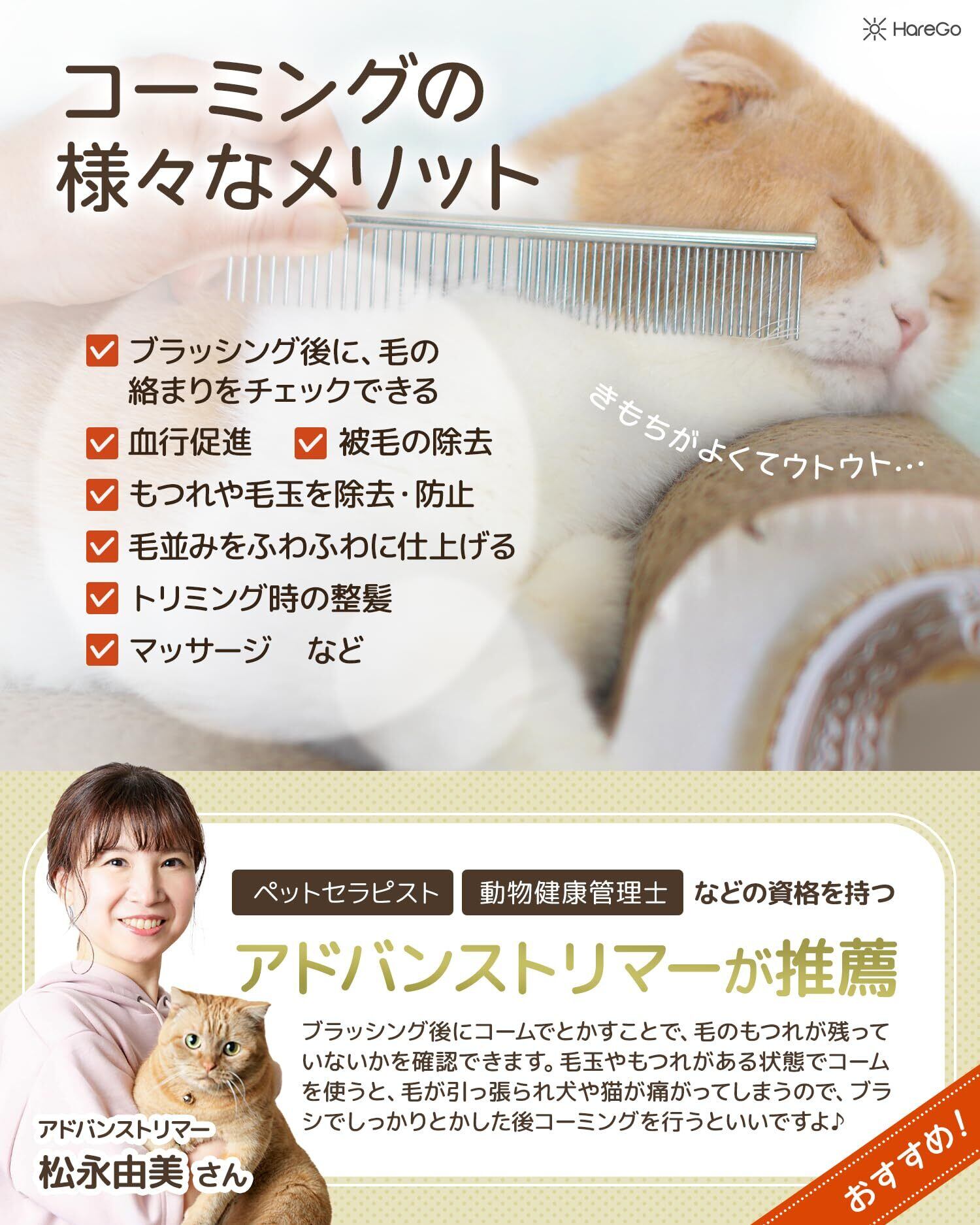 HareGo 犬 猫 コーム ケース付き (中)【トリマー推薦&ブラッシング動画付!】ペット コーム くし ペット用コーム