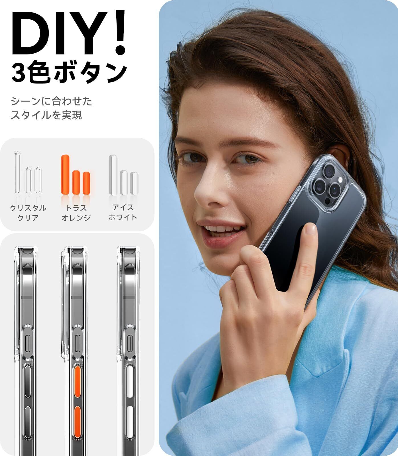 【革新的サイドベゼル切り込み!3色のボタン付き】鮮やかなボタン色はもう二組付属されているため、お好みによって組み合わせられ、気分によって変えられ、シーンに合わせたスタイルを実現!また、iPhone 16Pro向け最新デザインがついに登場!ケースの側面にある撮影ボタン専用の切り込みを施し、ボタンの感触をリアルに楽しむことができます。この革新的な設計で、瞬時にシャッターを切るたび、新たな撮影体験をお楽しみいただけます。