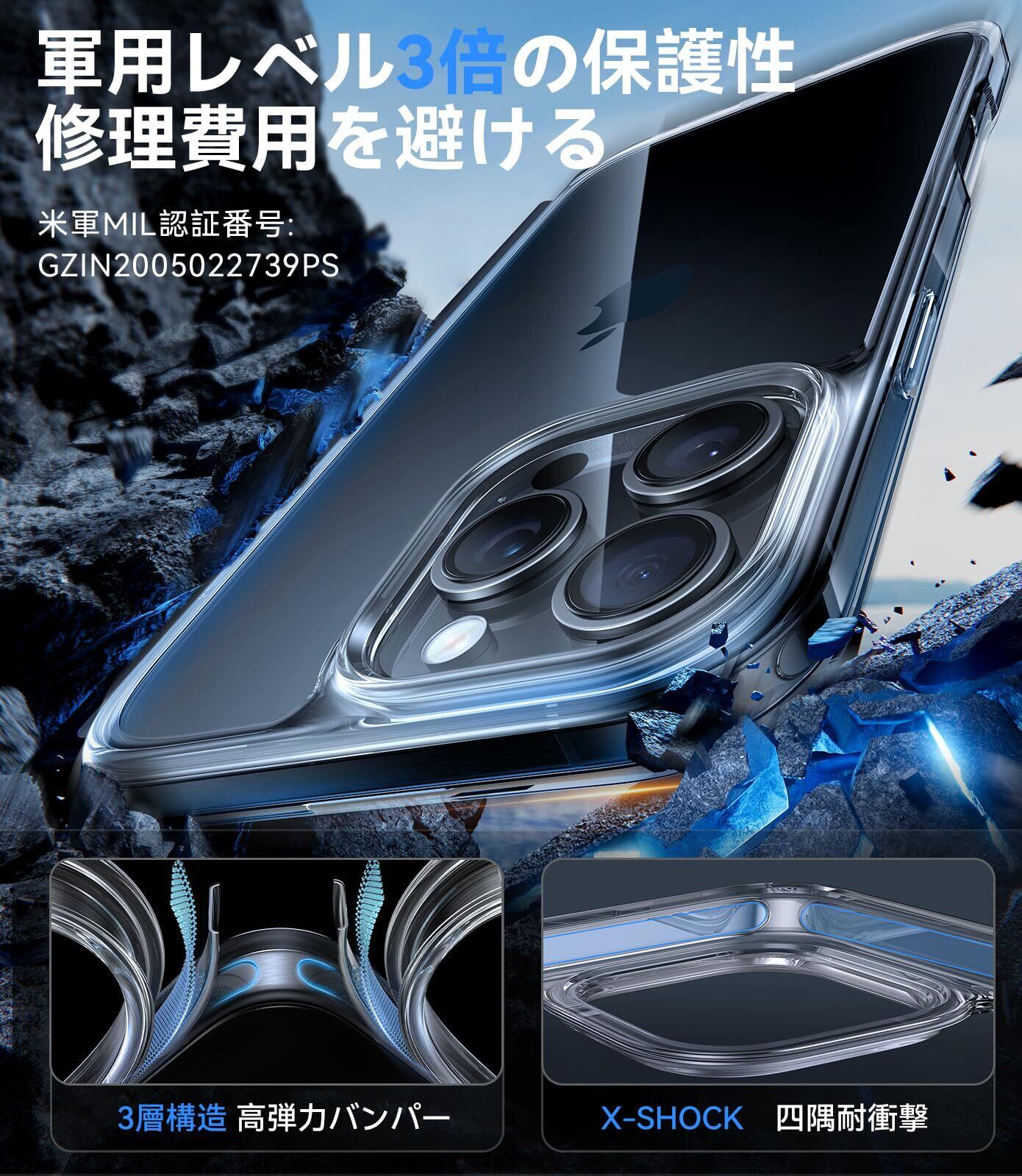 【2025アップグレード・軍用レベル保護力】iPhone 16 Pro用の ケース! 堅牢性には徹底的にこだわって開発しているケースが、特許全面保護システムが年々更新し、高い耐衝撃性を誇り、3Mの高さ、26回、それぞれ違う角度でコンクリートに落下させても本体は綺麗に無傷!スマホを守り抜く万全の備え! 「米軍規格認証番号:No.GZIN2005022739PS」