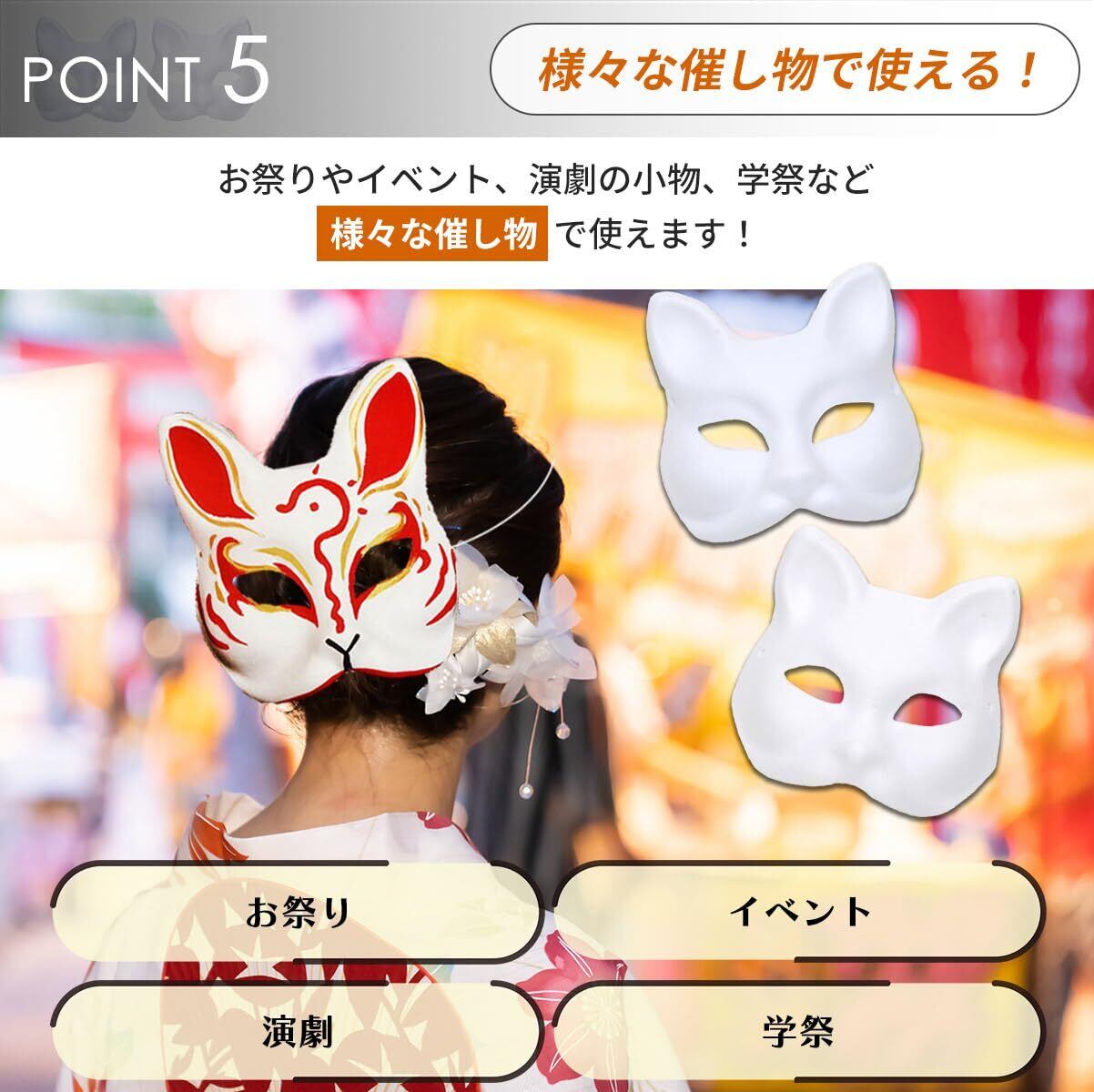 [StyleCoS] 狐面 猫面 お面 狐 猫 マスク コスプレ ペイント 紙パルプ製 半面 5枚セット (狐面)