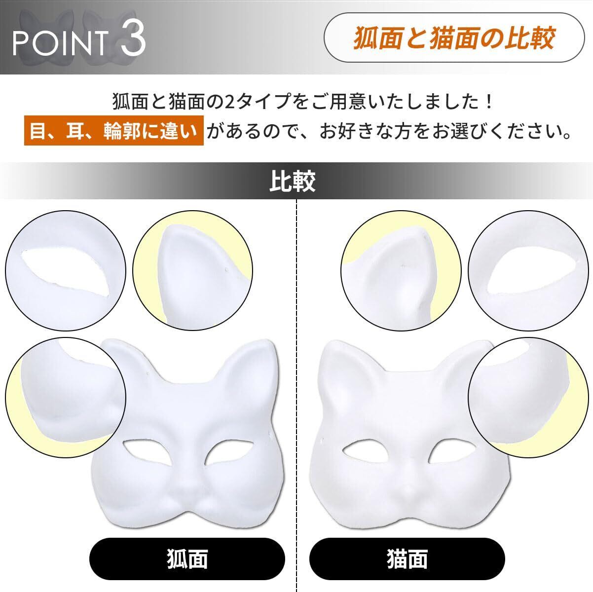 【丈夫な紙パルプ製】プラスチック製のように硬すぎない適度な強度なので、とても着けやすいお面になっています!狐面と猫面の2種類をご用意したので、お好きなニュアンスのお面をお選びいただけます。