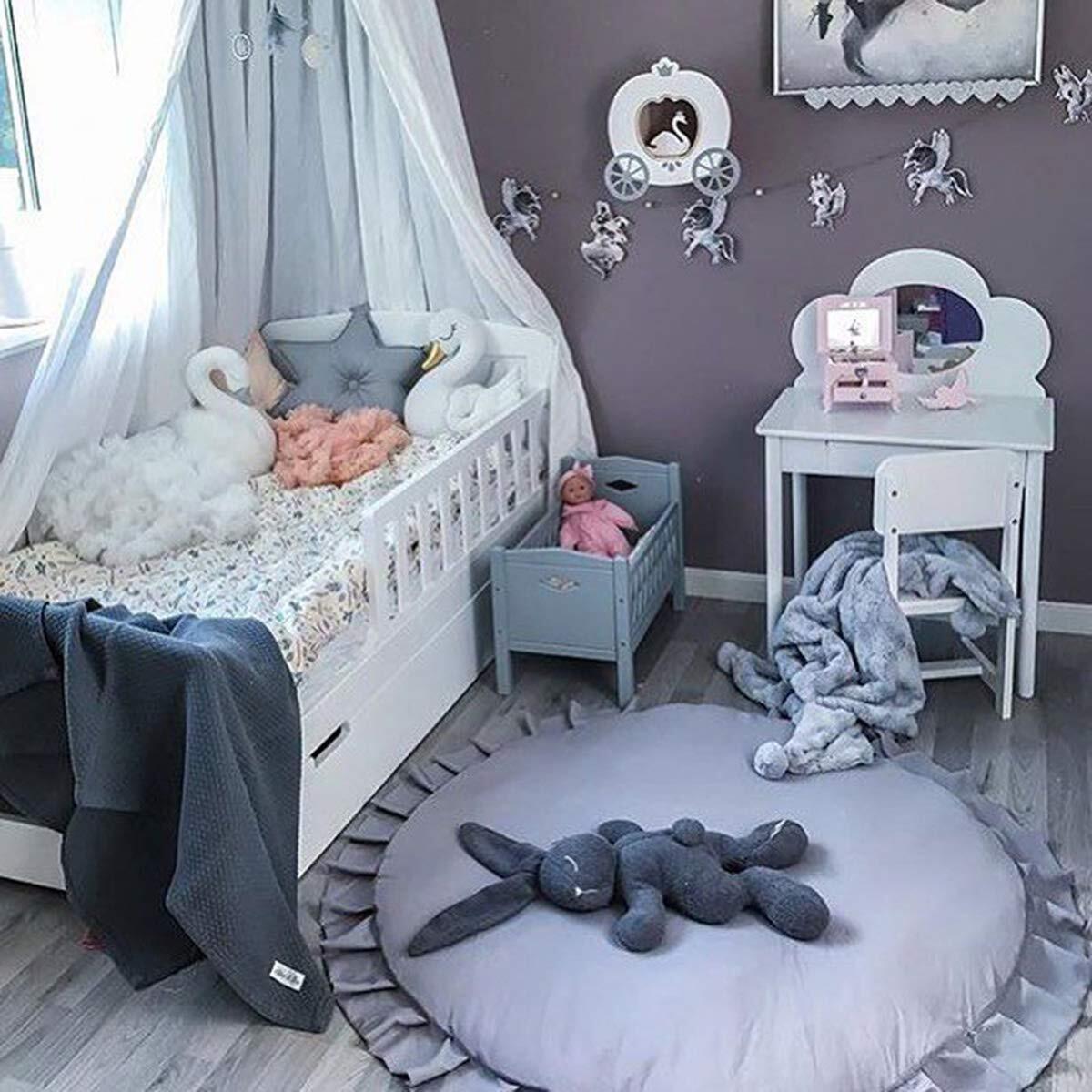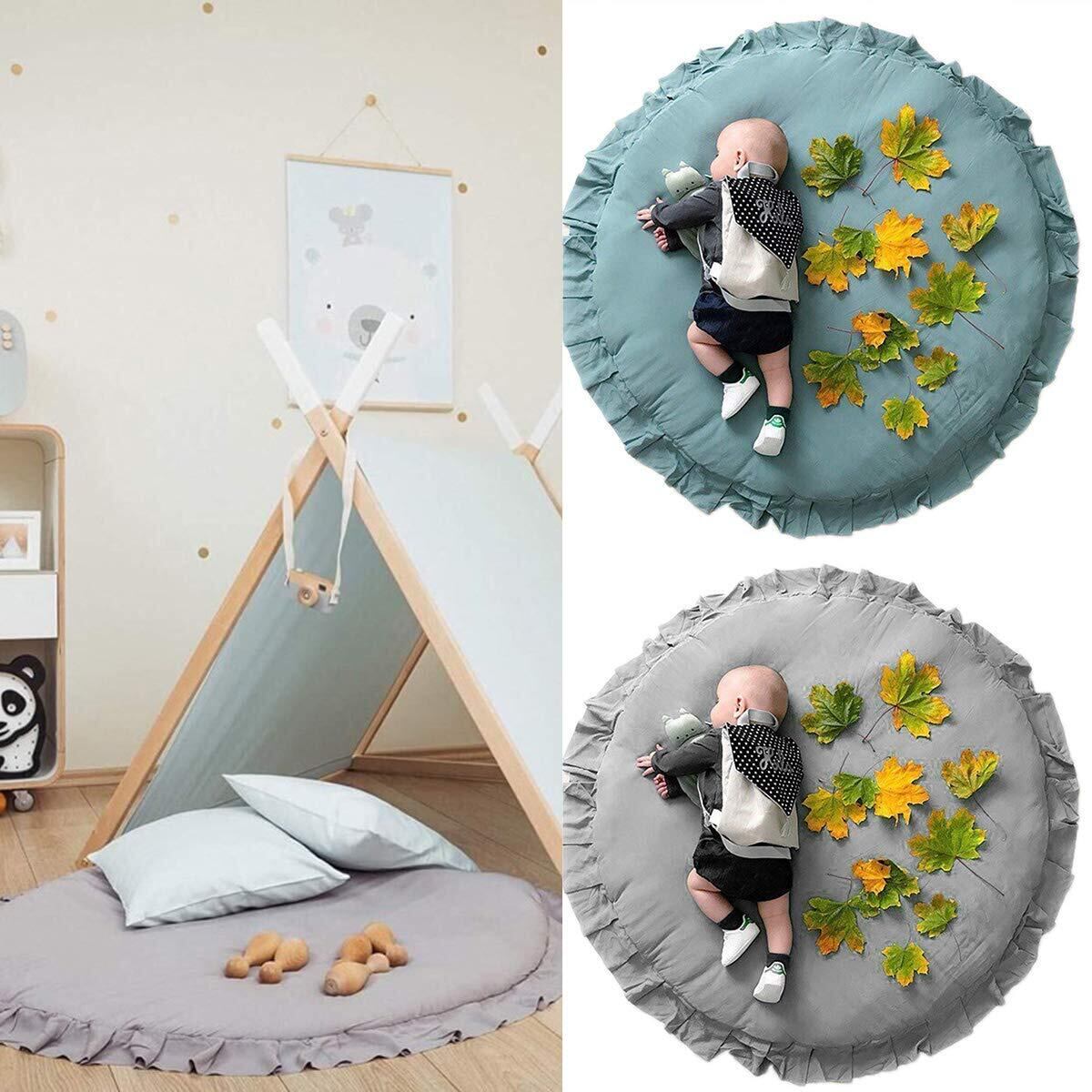 ORFINA ベビープレイマット 円形 遊びマット ラグマット サークルマット ベビークロールマット 柔らかい 綿 毛布レース パッド 超ソフト 四季兼用 水洗い/取り外し可能 ふんわり 厚手 赤ちゃん ギフト キッズ 抗菌加工 約直径100cm ファスナー付き (グレー)