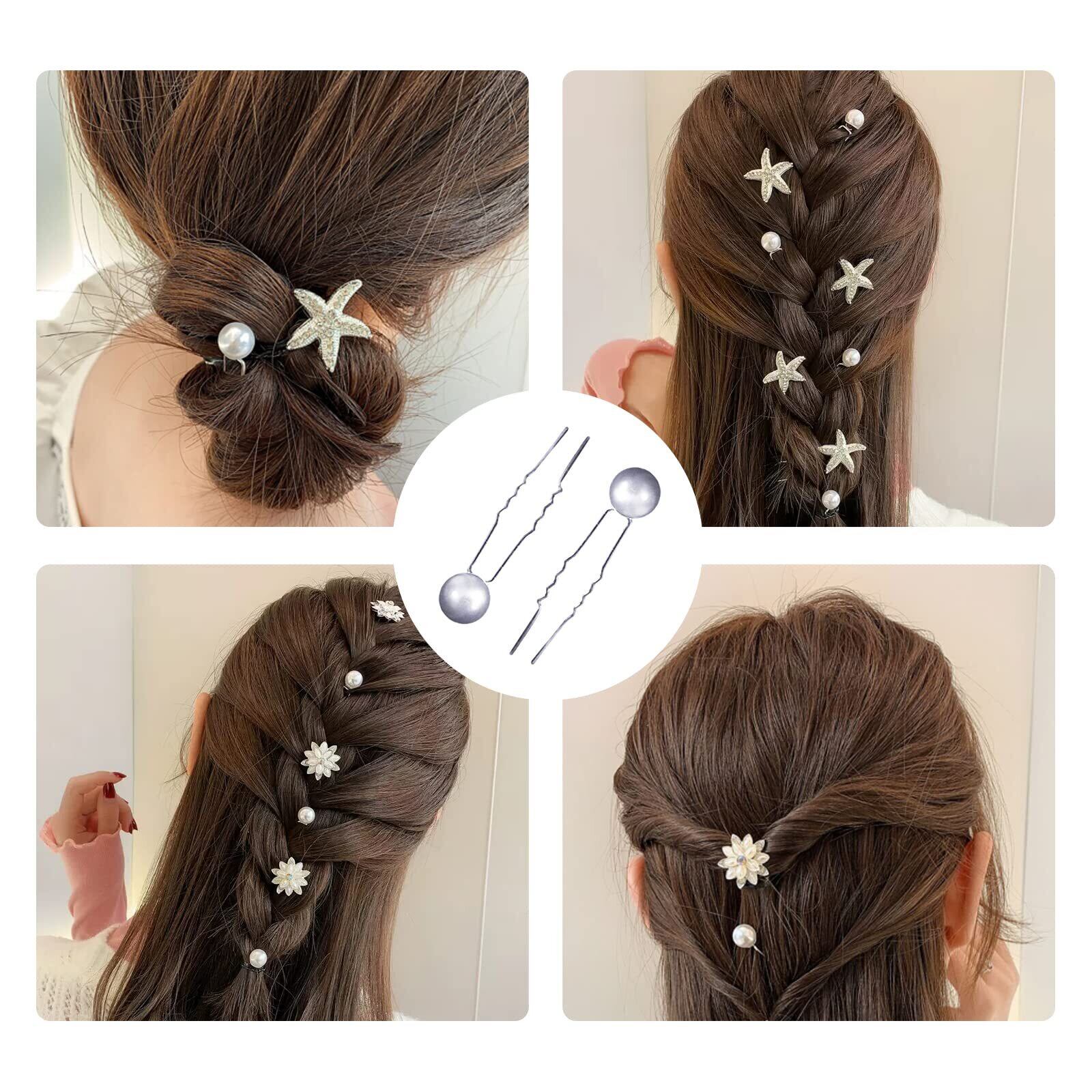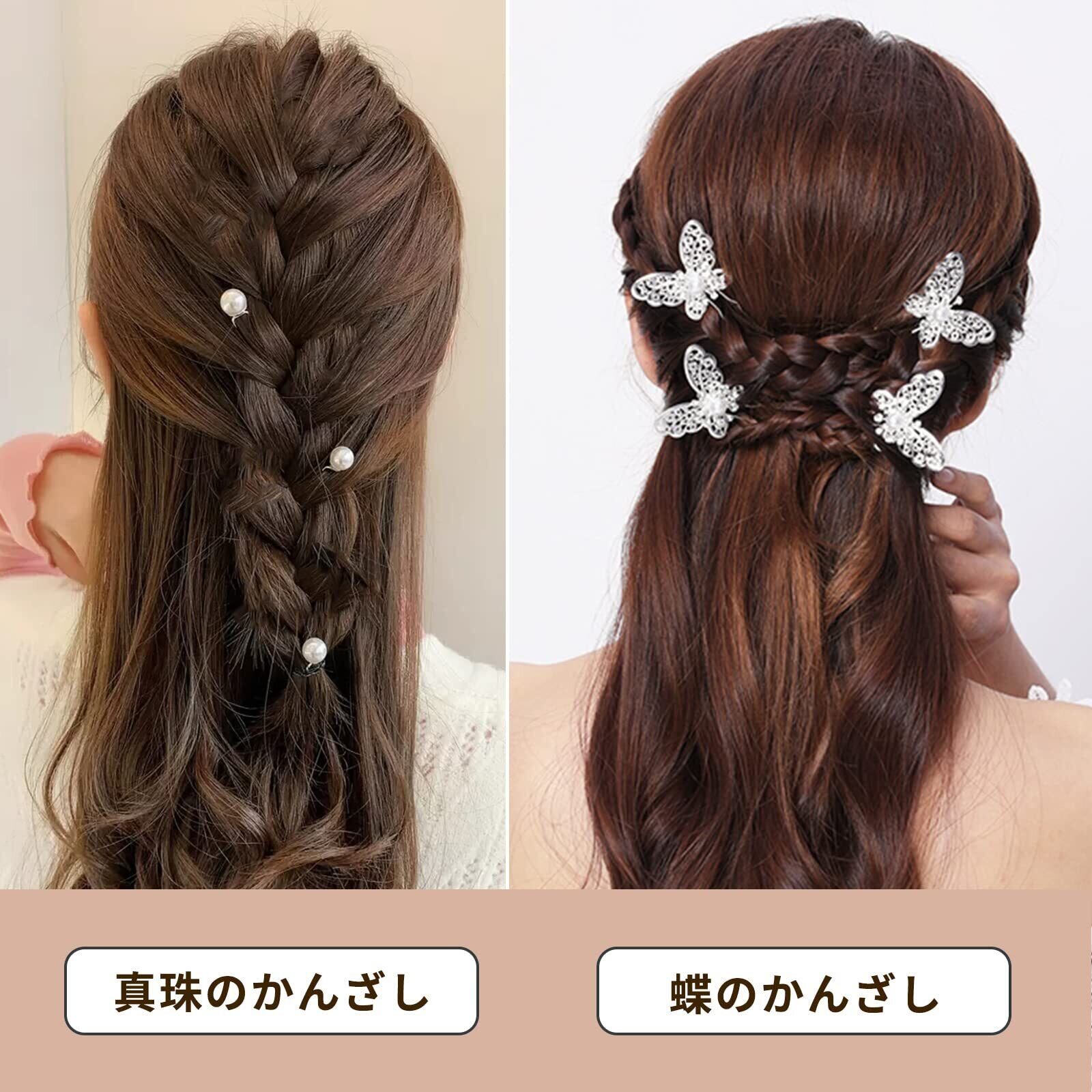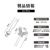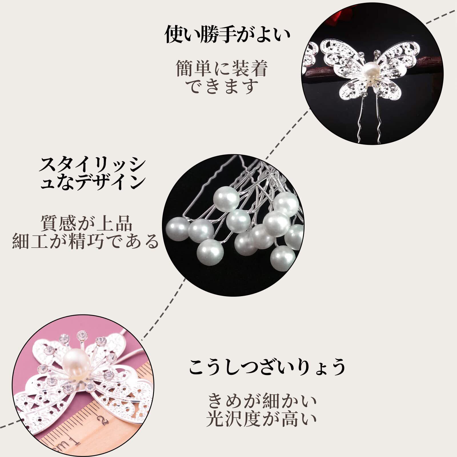 【セット含む】6シルバーの蝶ピンと10個の真珠のかんざしが届きます。日常のニーズに十分な数があり、きれいなヘアスタイルをDIYするのに役立ちます。