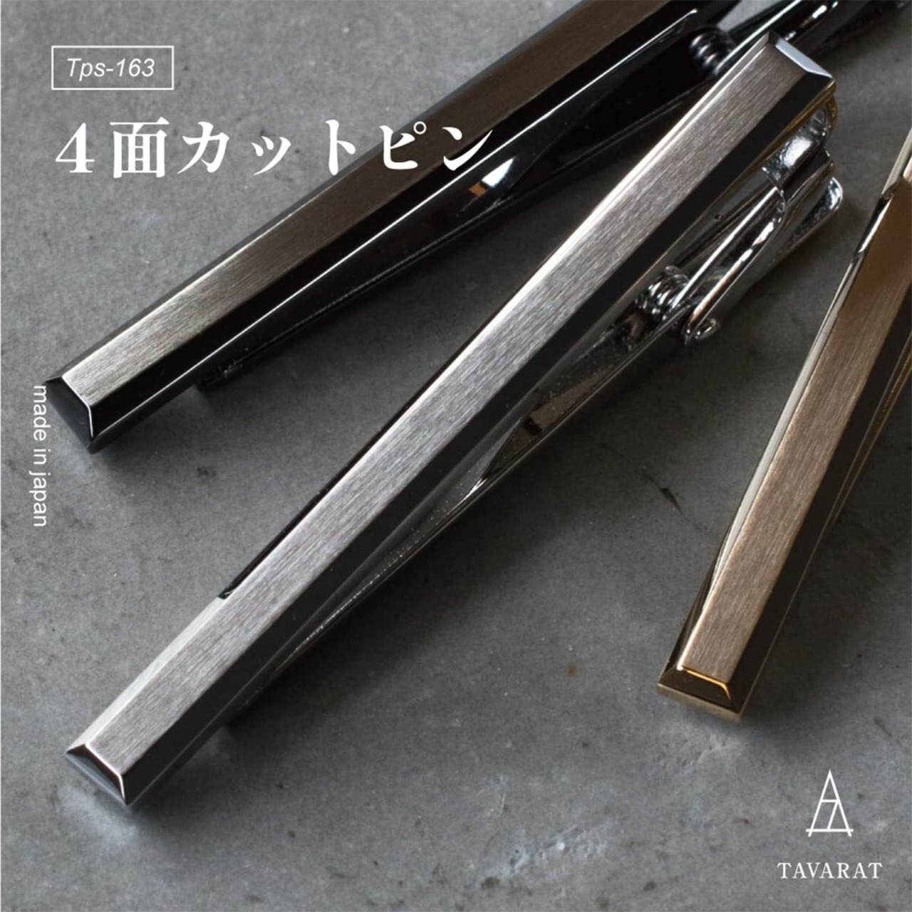 [タバラット] ネクタイピン タイピン タイバー メンズ 4面カット 日本製 真鍮 ワニ口式 (シルバー)