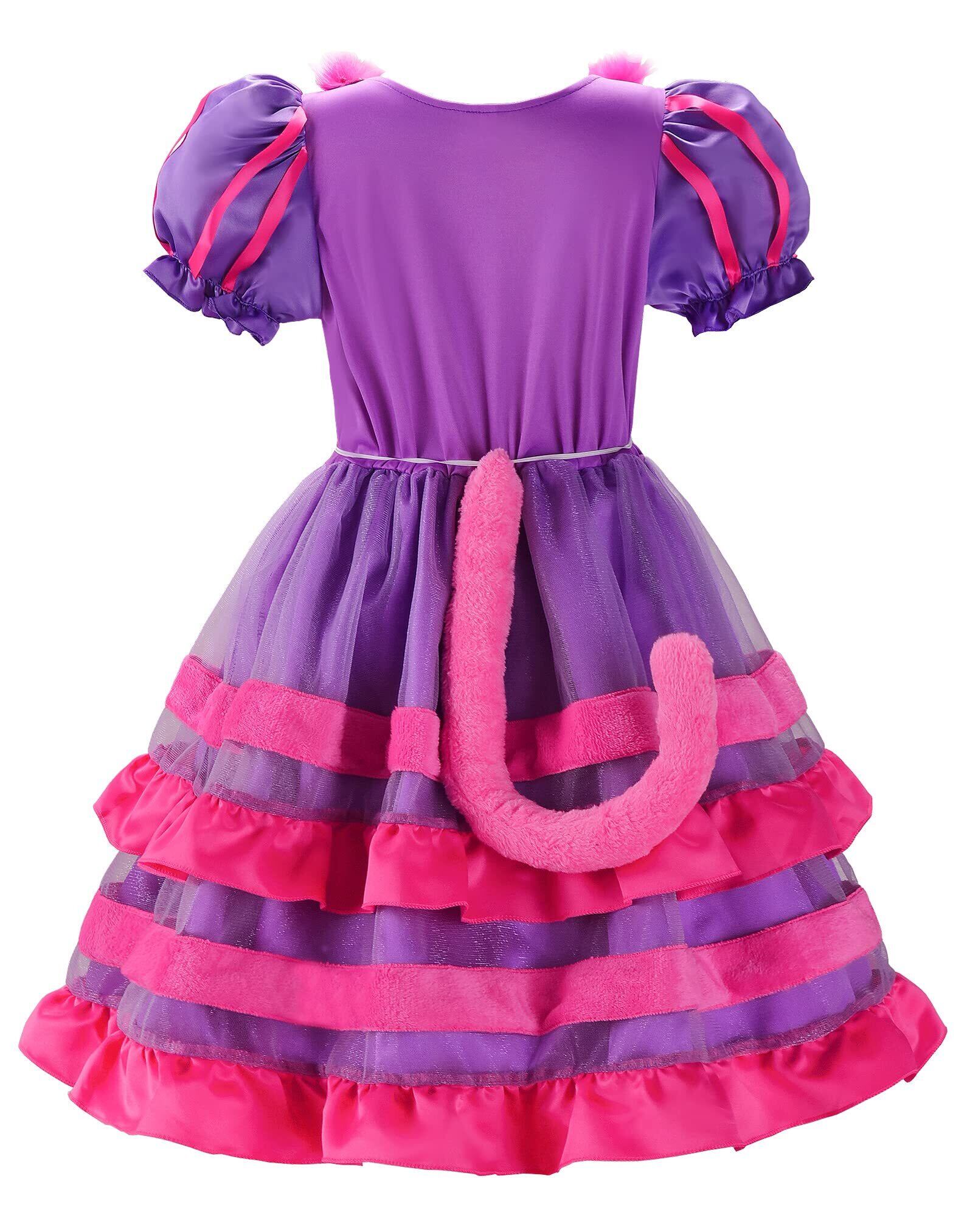 [ReliBeauty] 猫 コスプレ ハロウィン 仮装 子供 女の子 ネコ アニマル キッズ コスチューム クリスマス パーティー ワンピース 猫耳カチューシャ しっぽ 肉球手袋 4点セット 紫 130