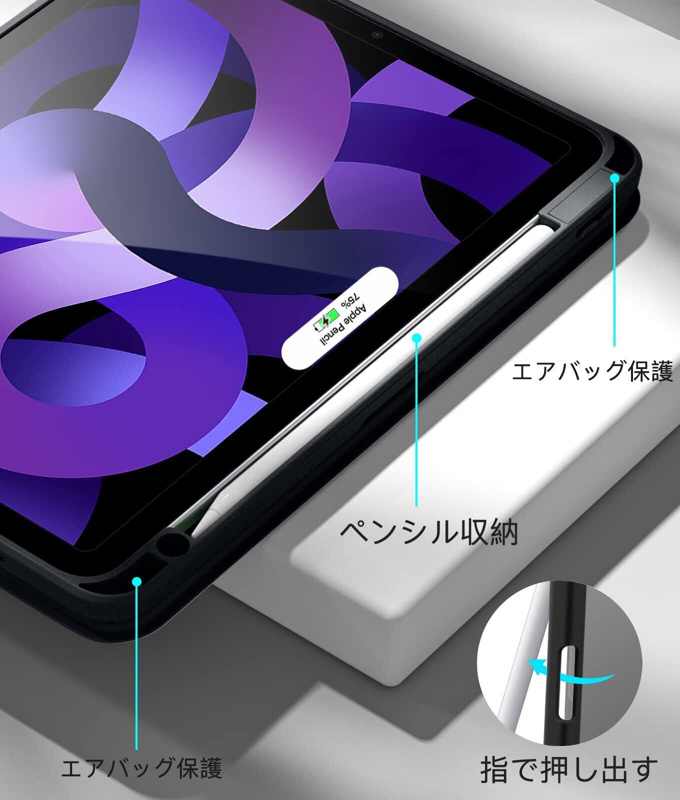 ✫【対応Apple Pencil収納】 対応iPad air5/4 ケースは便利なペンホルダーが付き、ペンシル紛失せずご安心利用頂けます。また、対応Apple Pencil 2 ワイヤレス充電も可能なので、収納や持ち運びに便利です、いつでもどこでも対応iPadを快適に使えます。