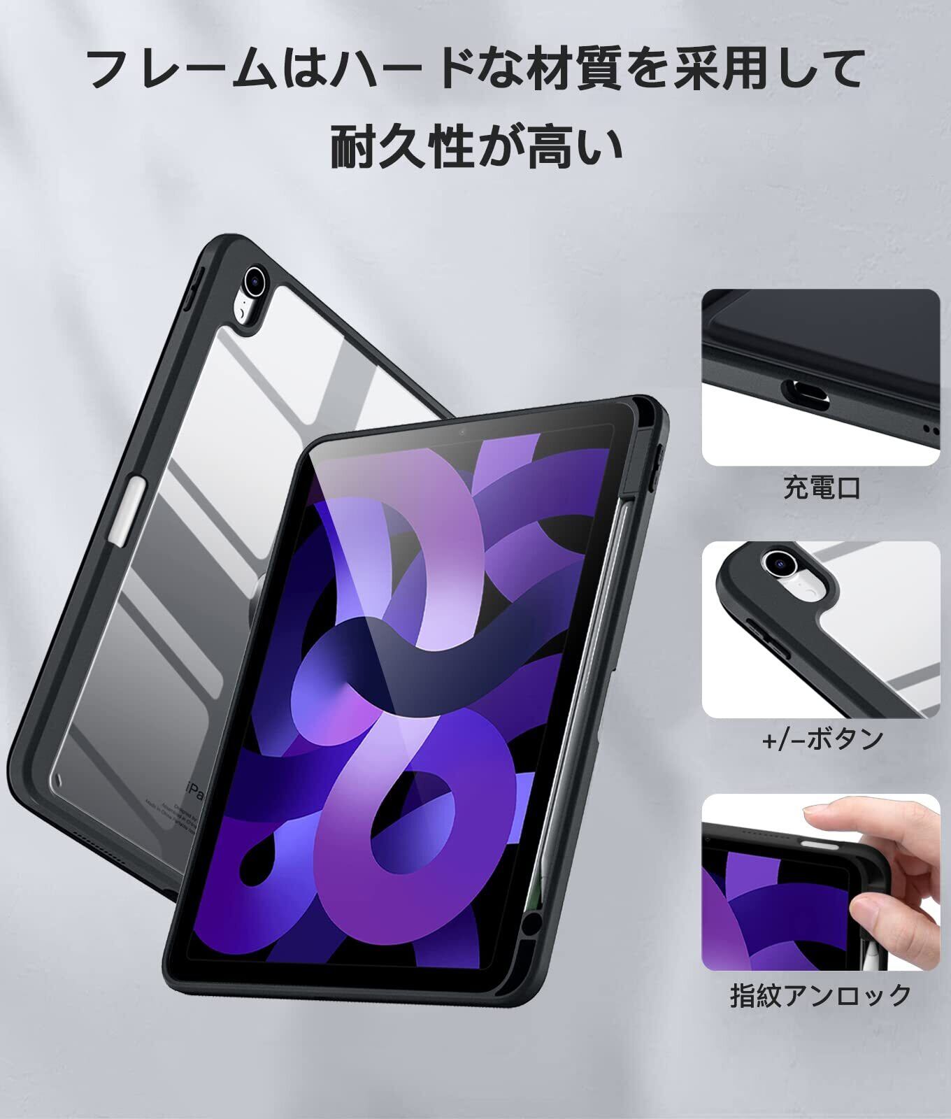 ✫【透明バックカバー】対応iPad air 11インチ ケースの表面はPUレザー素材を利用して、軽量、超薄を備えます。ポリカーボネート素材を採用している透明バックカバーは汚れや傷つけなどを防止するだけでなく、対応iPad本体の色と美しさも活かせます。透明バックカバーの枠は柔軟な TPUを採用して、取り付けも簡単にできます。フロントカバー内部材質はマイクロファイバーで、摩擦によって発生する傷を抑え、液晶画面を保護しきれいに保ちます。