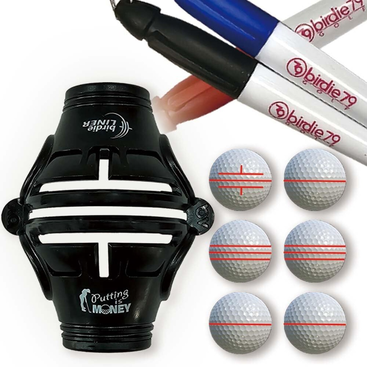 BIRDIE79 予算に優しいナチュラルライナーゴルフボールマーカー - 360° 3本ラインステンシル マーカーペン3本付き