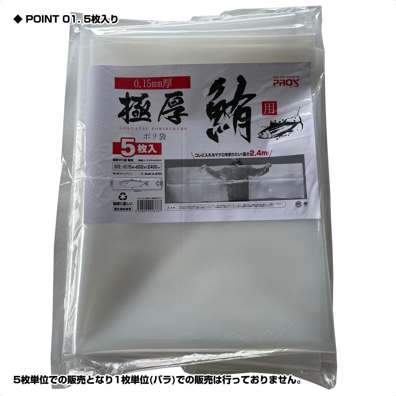 プロックス(PROX) 極厚ポリ袋 鮪(マグロ)用/5枚入 PX443245P フィッシュキャリー 【厚さ0.15mmの極厚ポリエチレン袋】