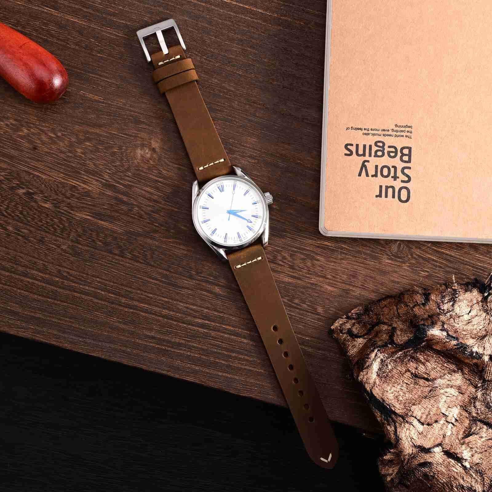 ステッチはすべてフレンチワックス糸を使用し、手作業で縫製されています。時計バンドの耐久性を高めながらヴィンテージな外観を与え、パイロットウォッチやスポーツウォッチに最適です。