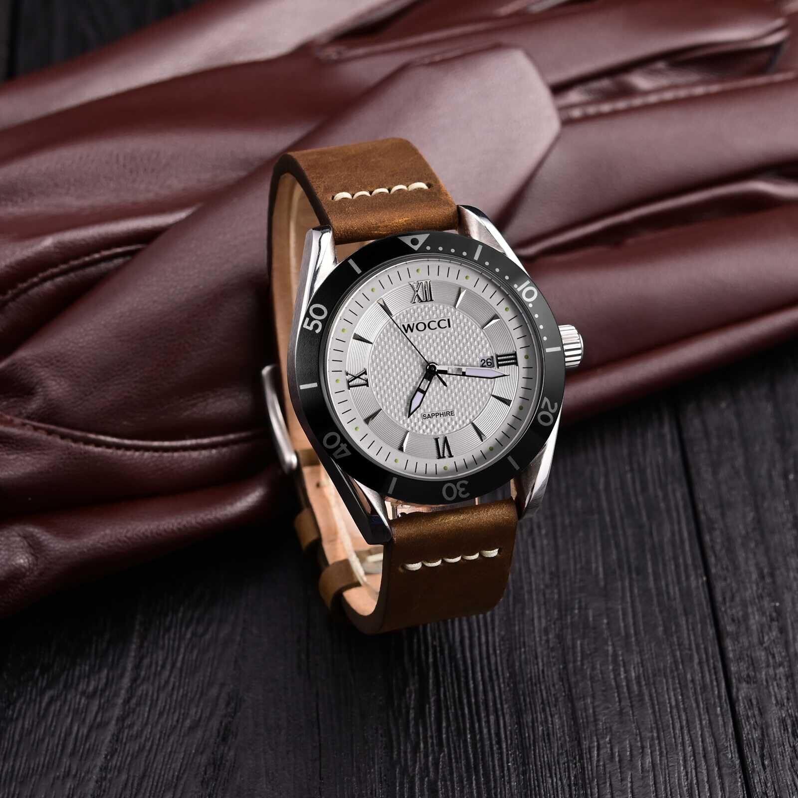 [WOCCI] 時計ベルト 本革 アンティーク腕時計バンド 18mm トップグレインレザー Quick Release キャメル/シルバーバックル