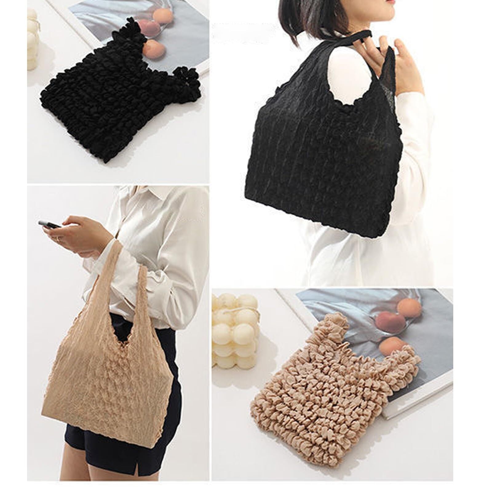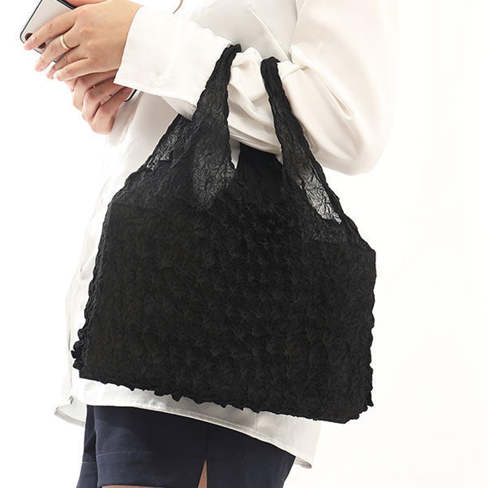 [YINKE] エコバッグ 絞り ラージ コンパクト 大容量 伸縮 折り畳み 不要 しぼり 荷物に合わせて伸びる エコバッグ お買い物バッグ コンビニバッグ 収納(ブラック)