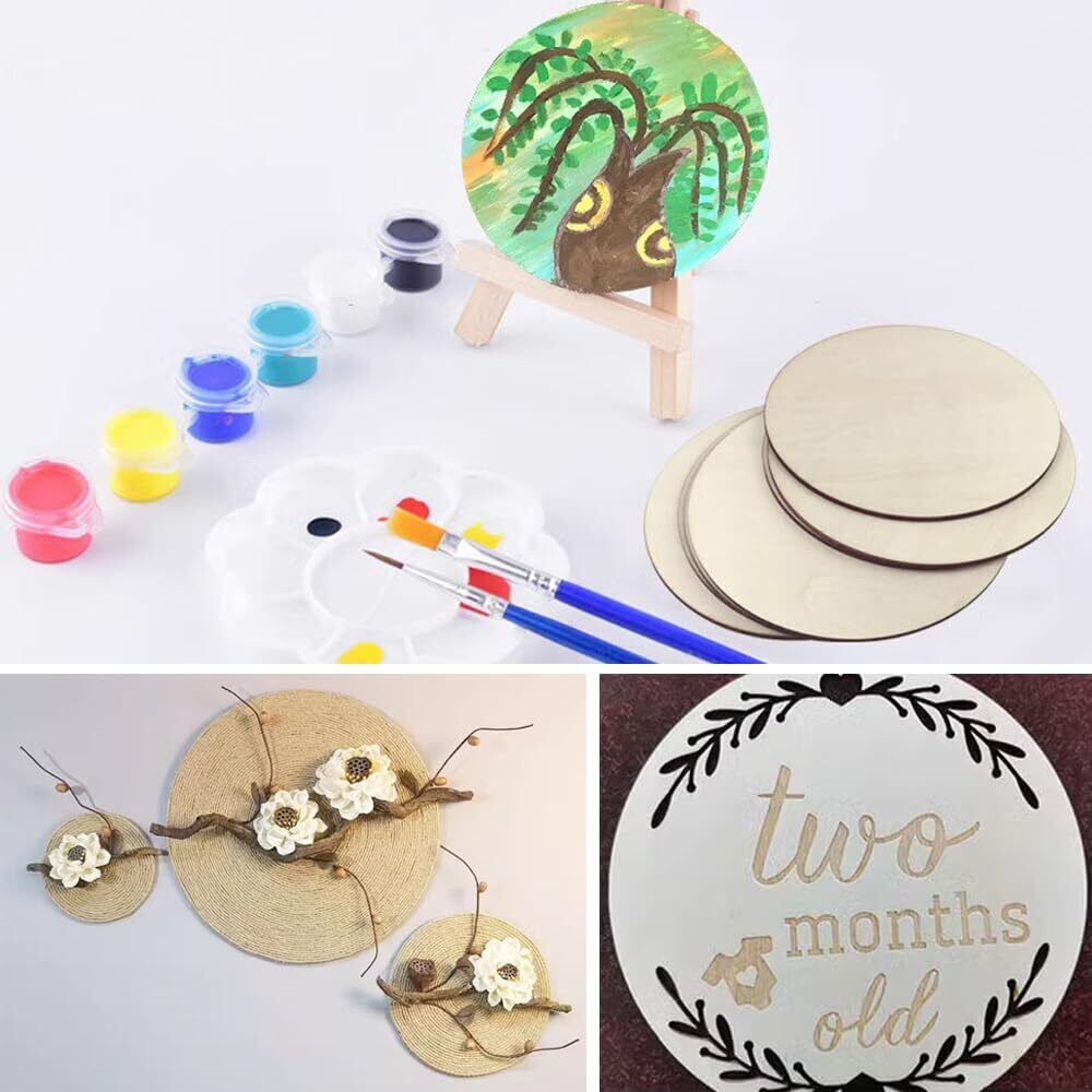 LIANHATA 丸型 木片 木材 50個セット 外径50mm 厚み3mm DIY 手芸用 クラフト 素材 丸 木製スライス デコレーション 装飾品 絵画 (丸型A)