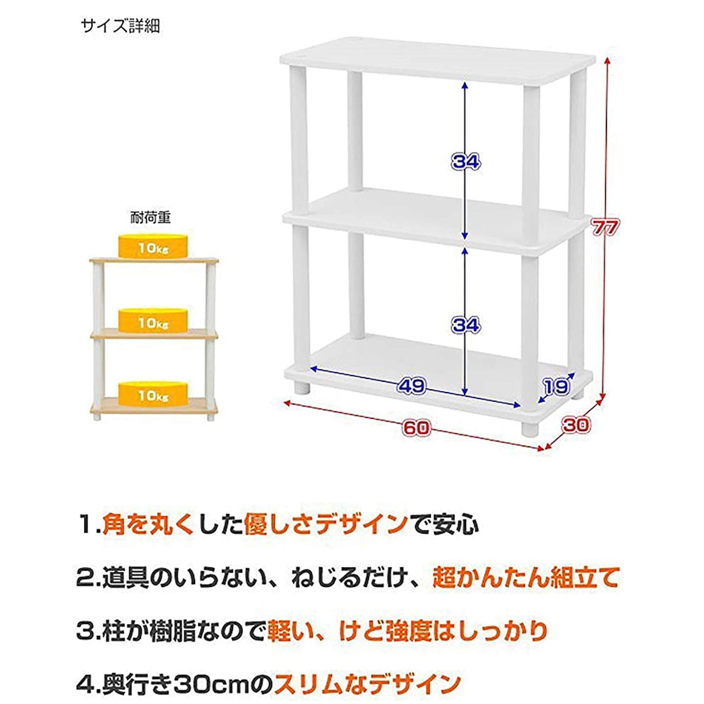 素材・材質:支柱=ポリエチレン、ポリプロピレン、棚板=プリント紙化粧繊維板