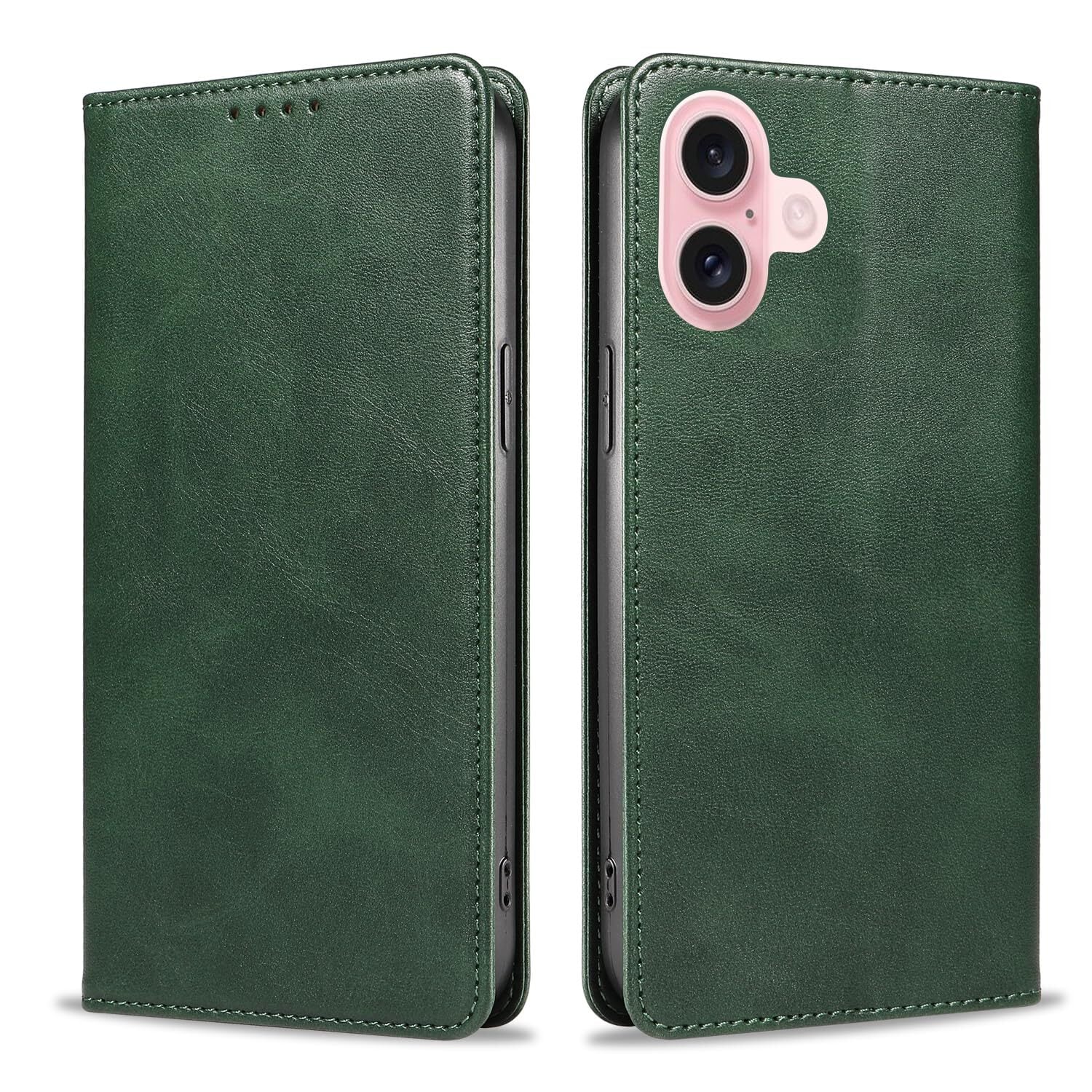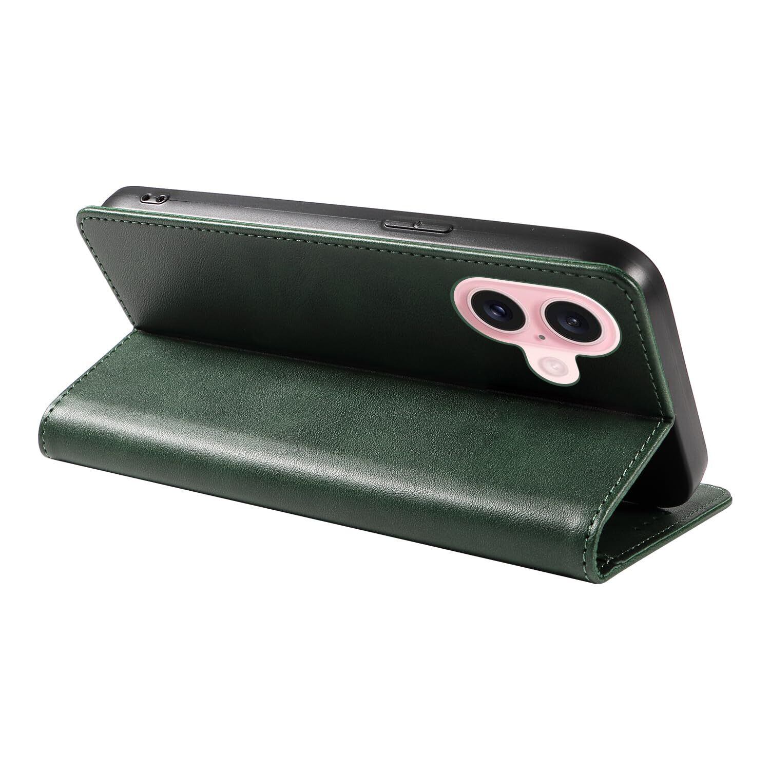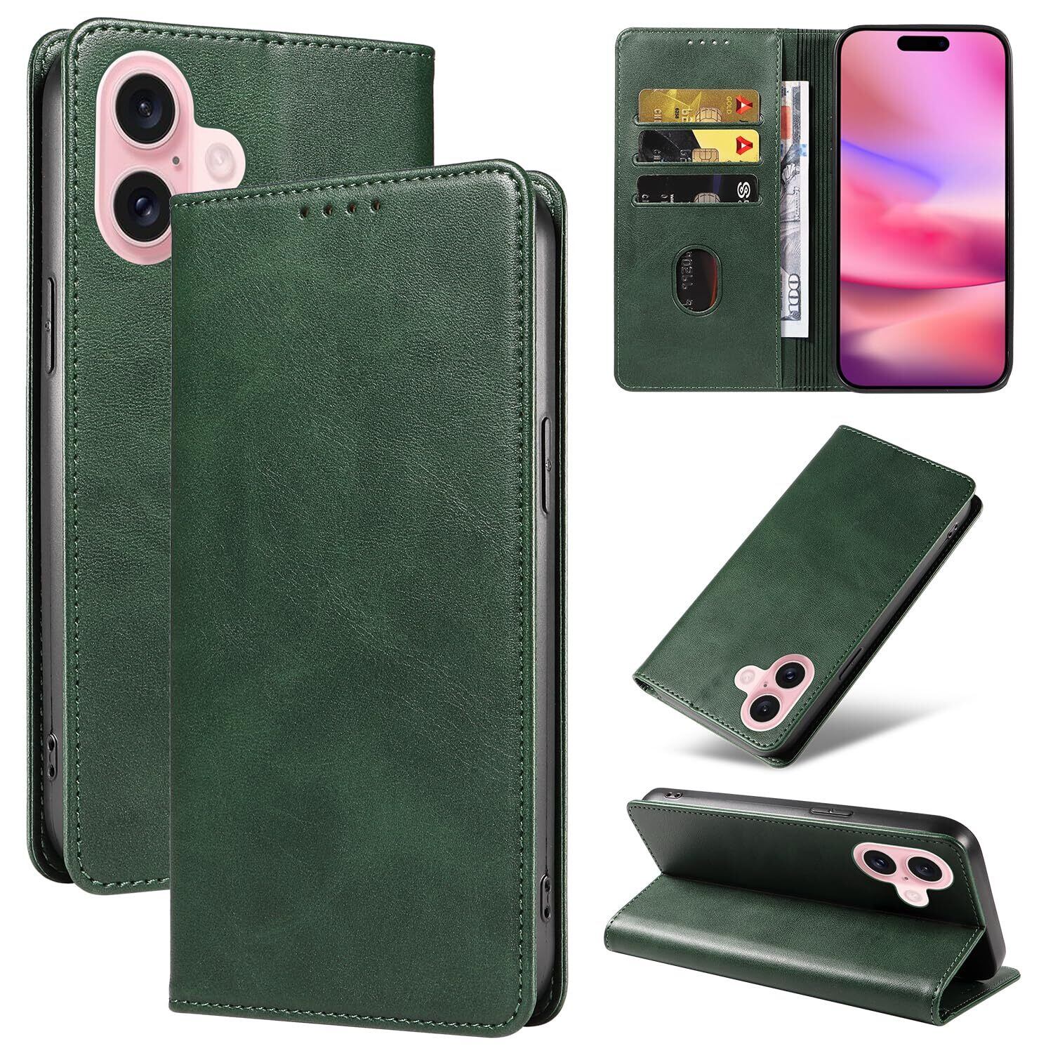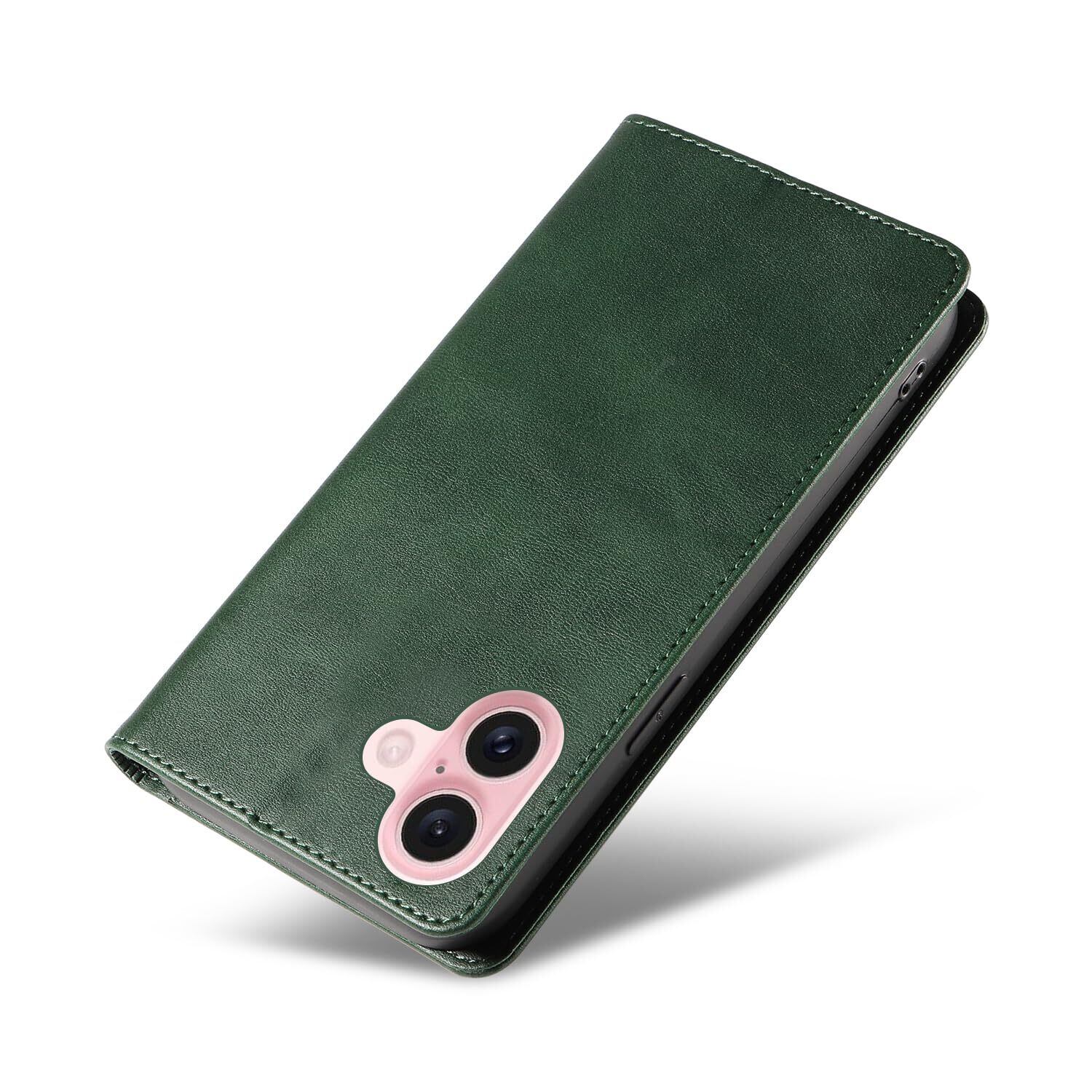 iPhone 16 ケース いPhone16 ケース アイフォン16 ケース スマホケース 手帳型 携帯カバー レザー 耐衝撃 軽量 着脱しやすい 放熱性 マグネット式 カード収納 スタンド機能ケース16 対応 360度保護 PinLiSheng (グリーン iPhone 16)