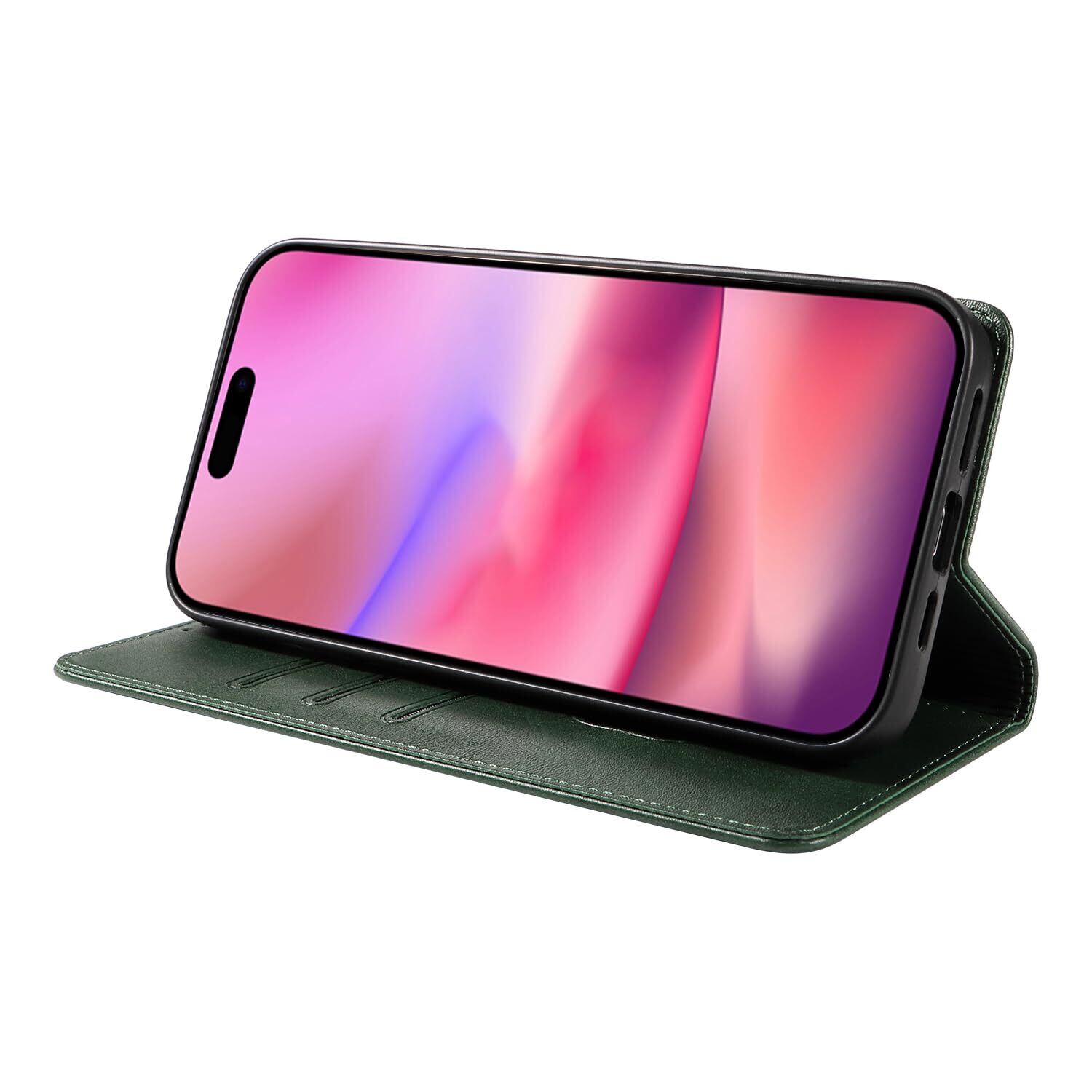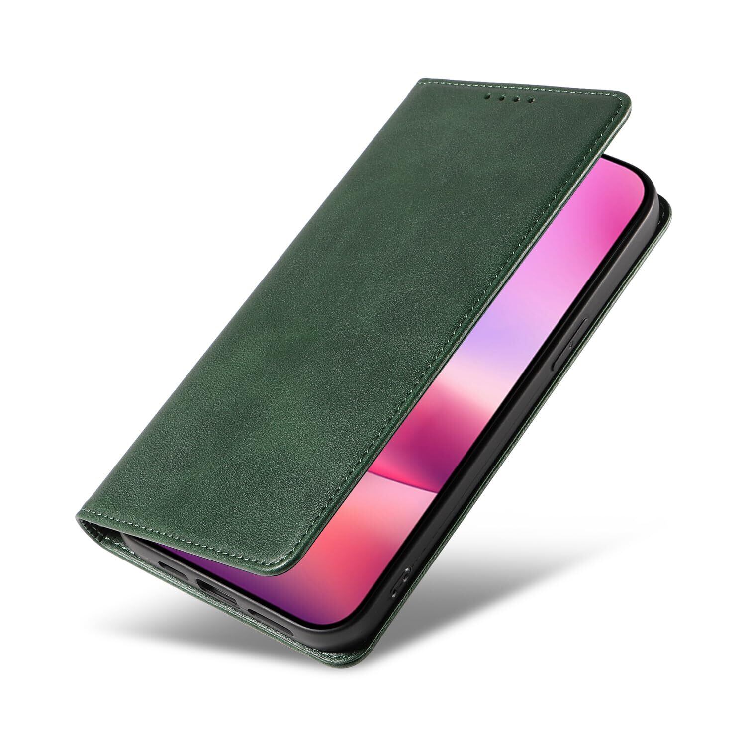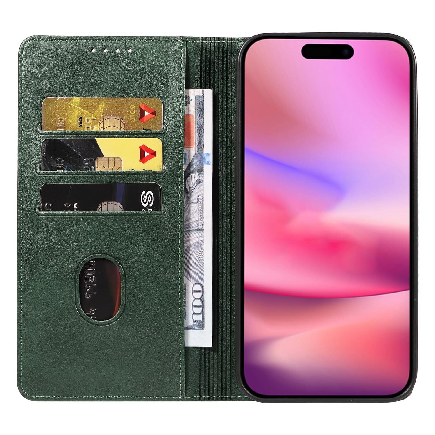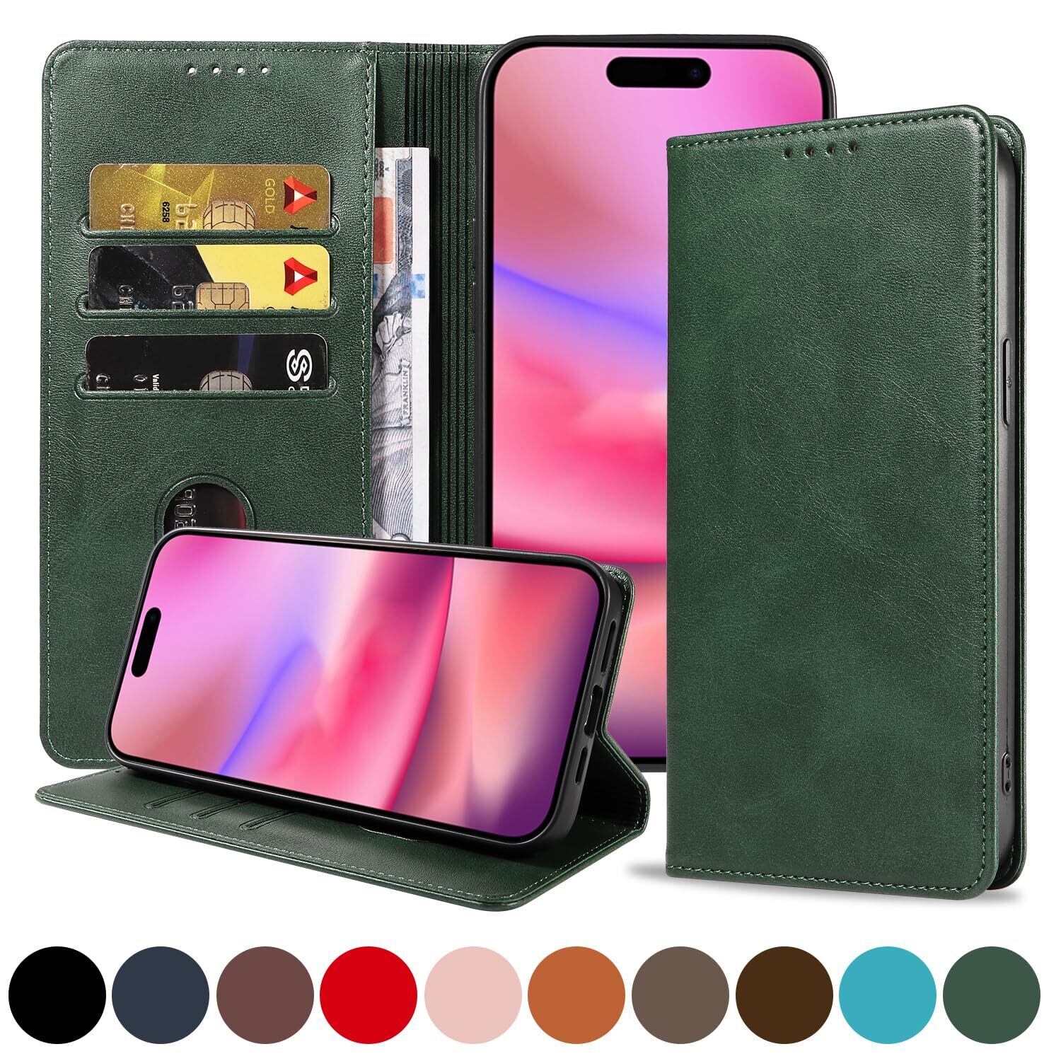 iPhone 16 ケース いPhone16 ケース アイフォン16 ケース スマホケース 手帳型 携帯カバー レザー 耐衝撃 軽量 着脱しやすい 放熱性 マグネット式 カード収納 スタンド機能ケース16 対応 360度保護 PinLiSheng (グリーン iPhone 16)