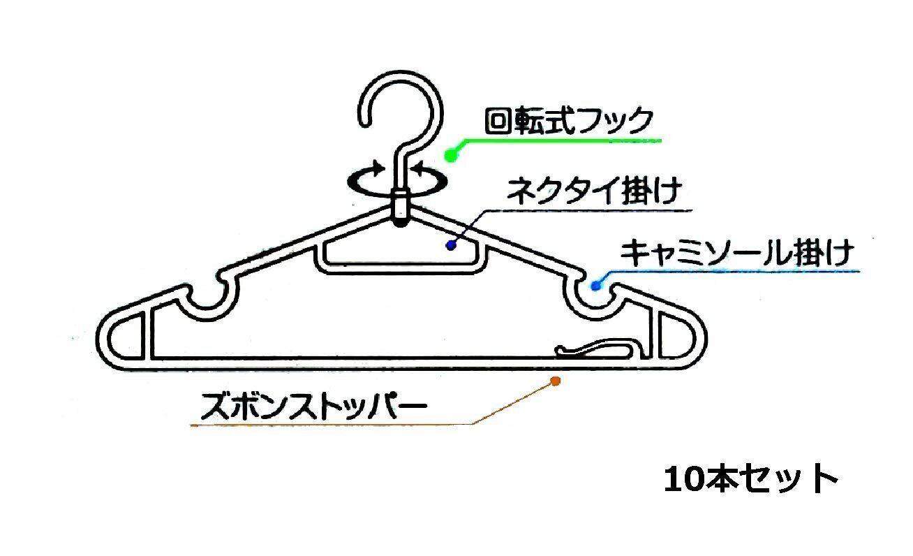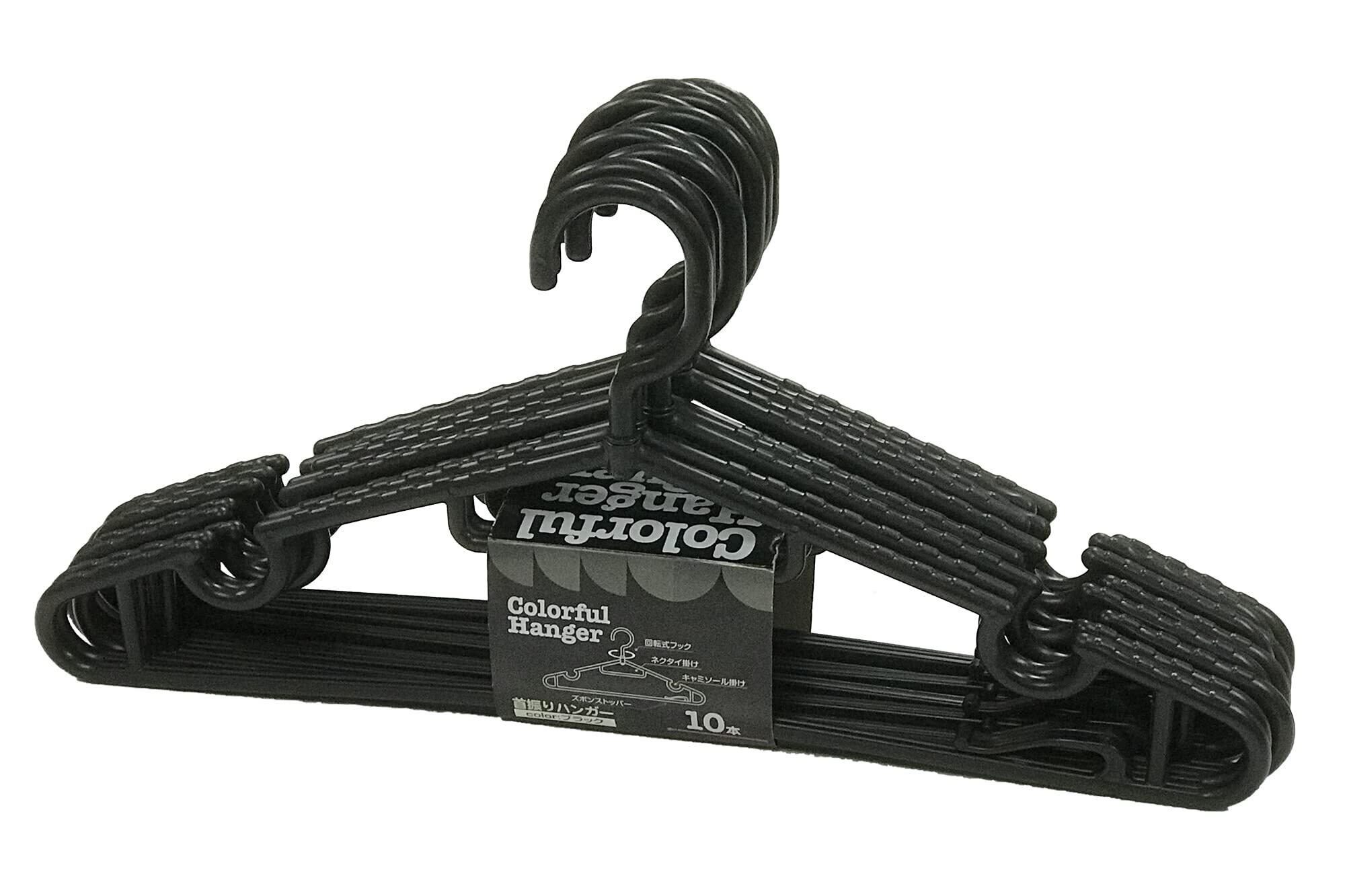 水勘製簾所 衣類ハンガー 洋服ハンガー 10本 ブラック 回転式フック ネクタイ掛け キャミソール掛け ズボンストパー付き