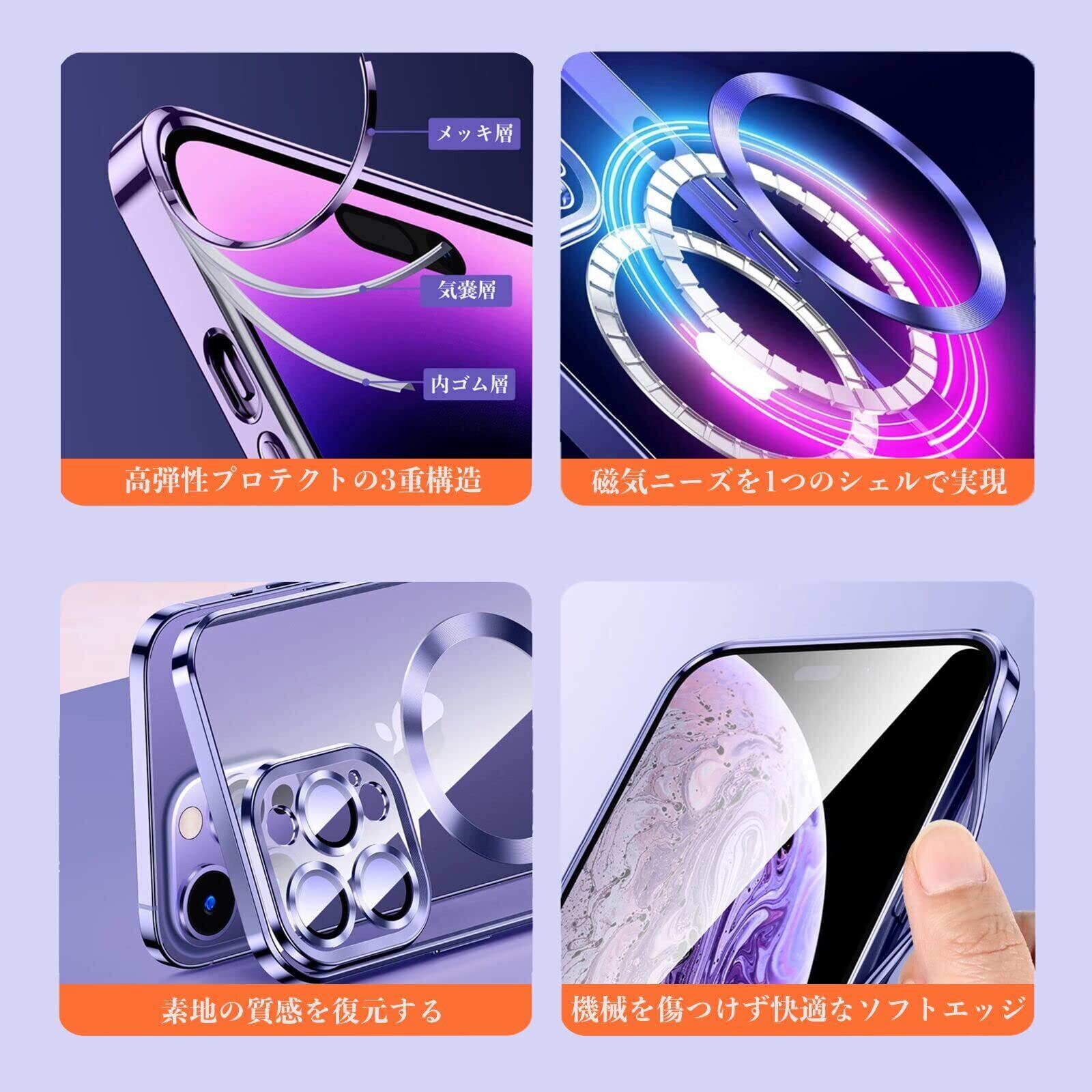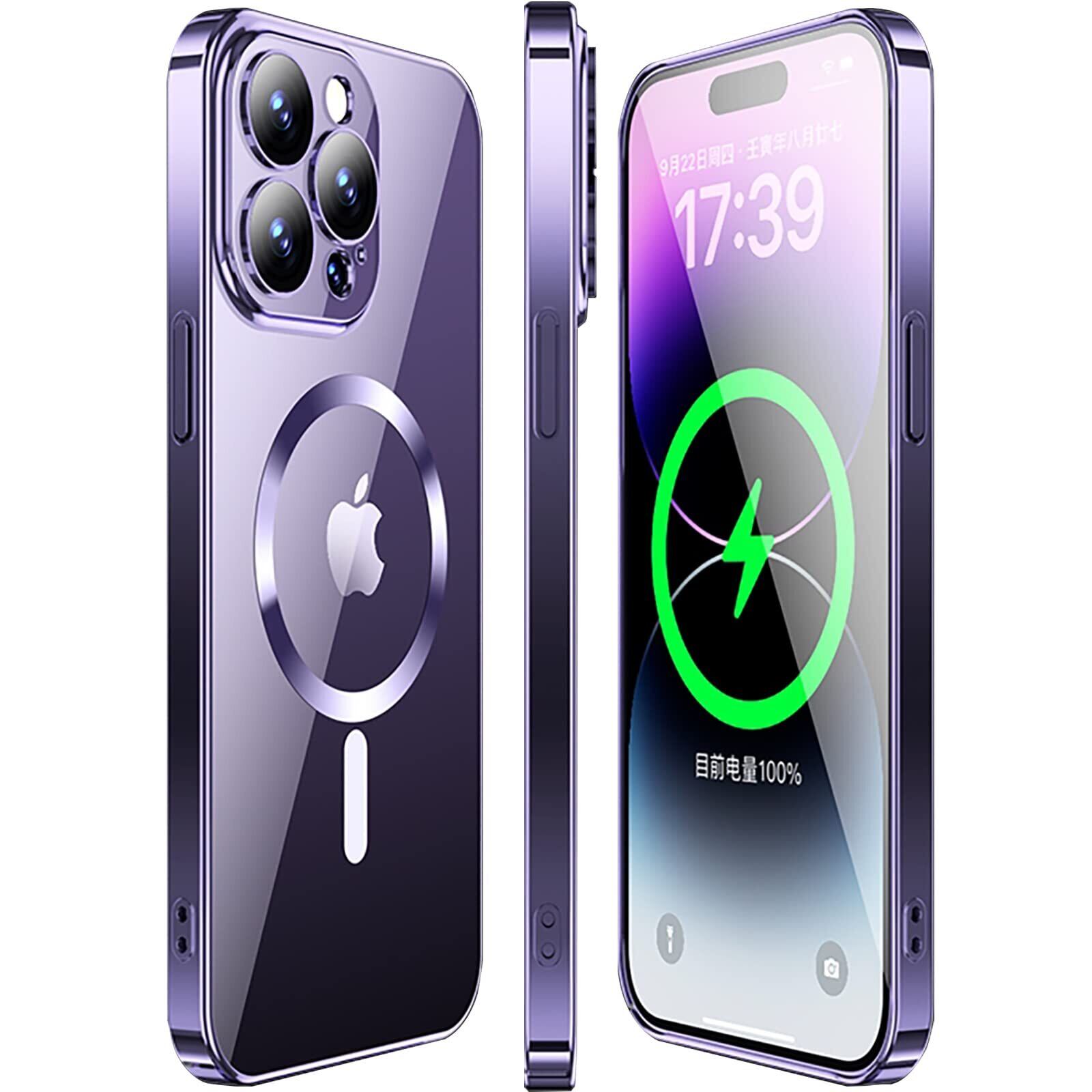 iyite iPhone 12 Pro Max ケース ハイブリッドケース HaloLock付き MagSafe対応 磁気充電 iphone12プロマックスケース アップグレードされた電気メッキの ソフトシェル 米軍MIL規格 SGS認証 衝撃保護 傷に強い背面 クリア 黄変しにくい ストラップホール付き 6.7インチ ダークパープル