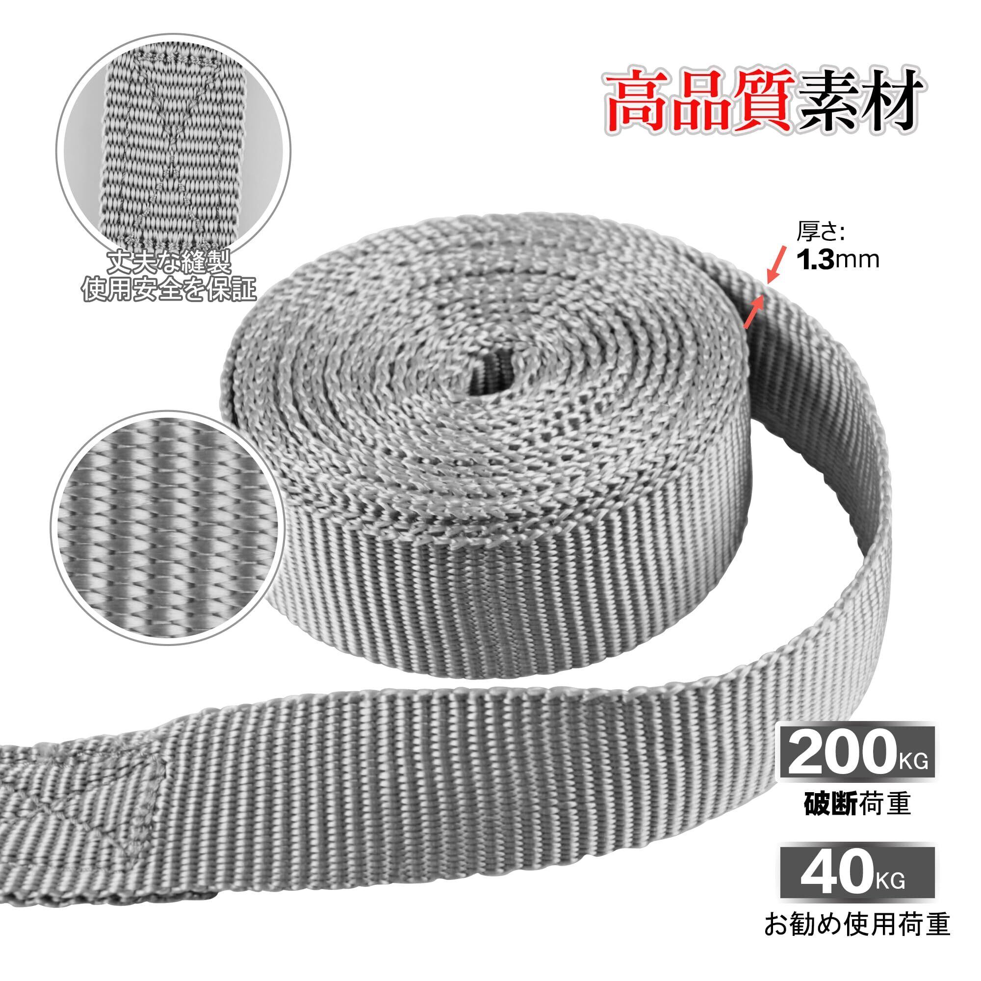 【耐荷重200KG】破断荷重200kgs、安全上の理由により、使用荷重は破断力の1/5(40kg)にすることをお勧めます。負荷がかかり破断しやすい部分は、3重折りで縫製して強度アップしており、貨物と荷物の安全を確保します。