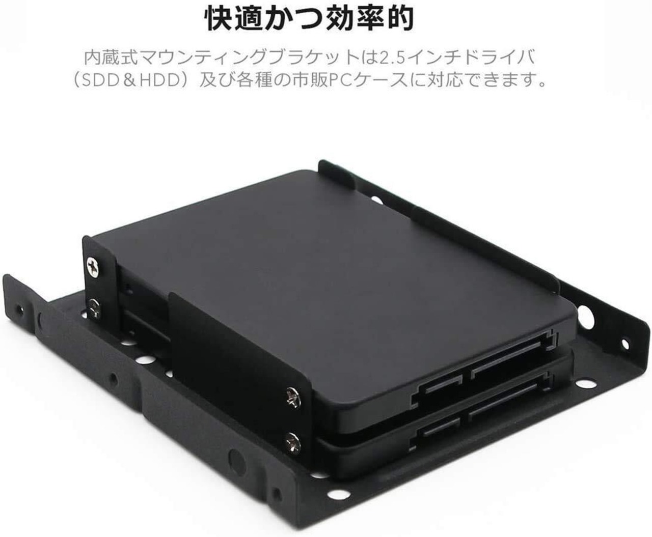 【高効率】2.5インチのドライブ二つに適用して、他のコンピュータコンポーネントに貴重な空間を提供します。