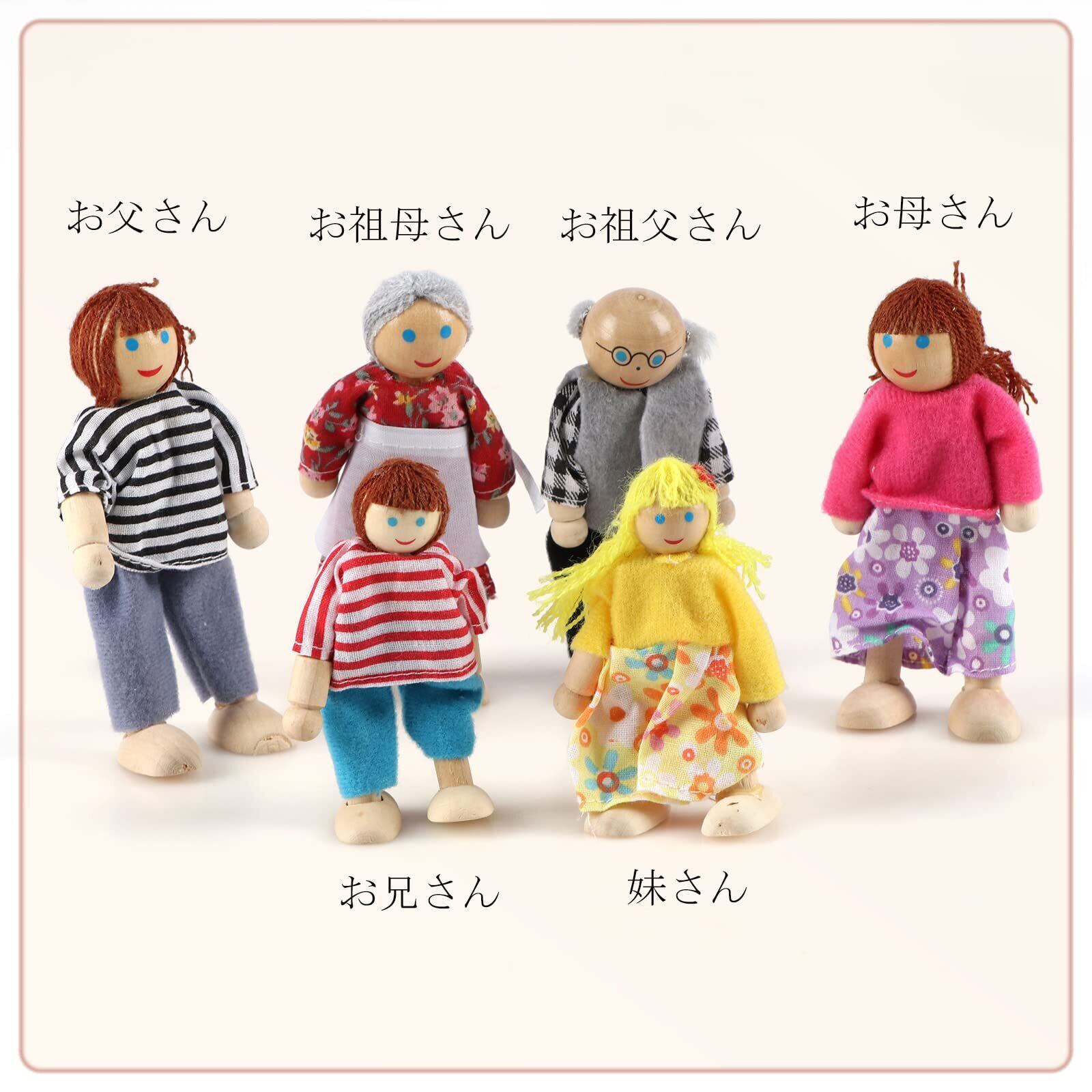 小さな人形:祖父母、両親、息子、娘を含む6人の家族人形がいる。人形の手と足は動くことができます。