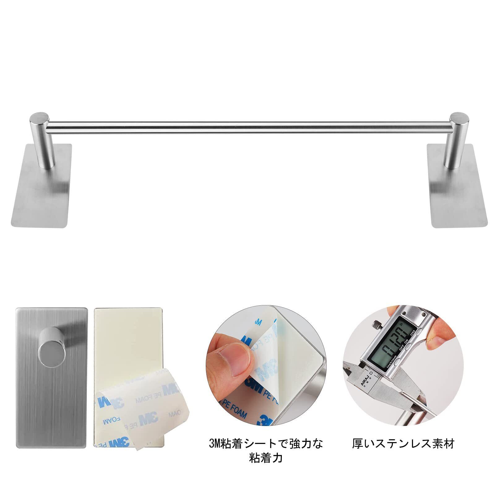【3M粘着粘り強い】タオルバー 粘着は3M粘着シートで強力な粘着力があり、穴を明ける必要はなく、新生代3M粘着シートでしっかりと壁などに貼り付けます。3M粘着テープを貼った、良好な接着力を発揮ため、24時間後に物を掛てください。