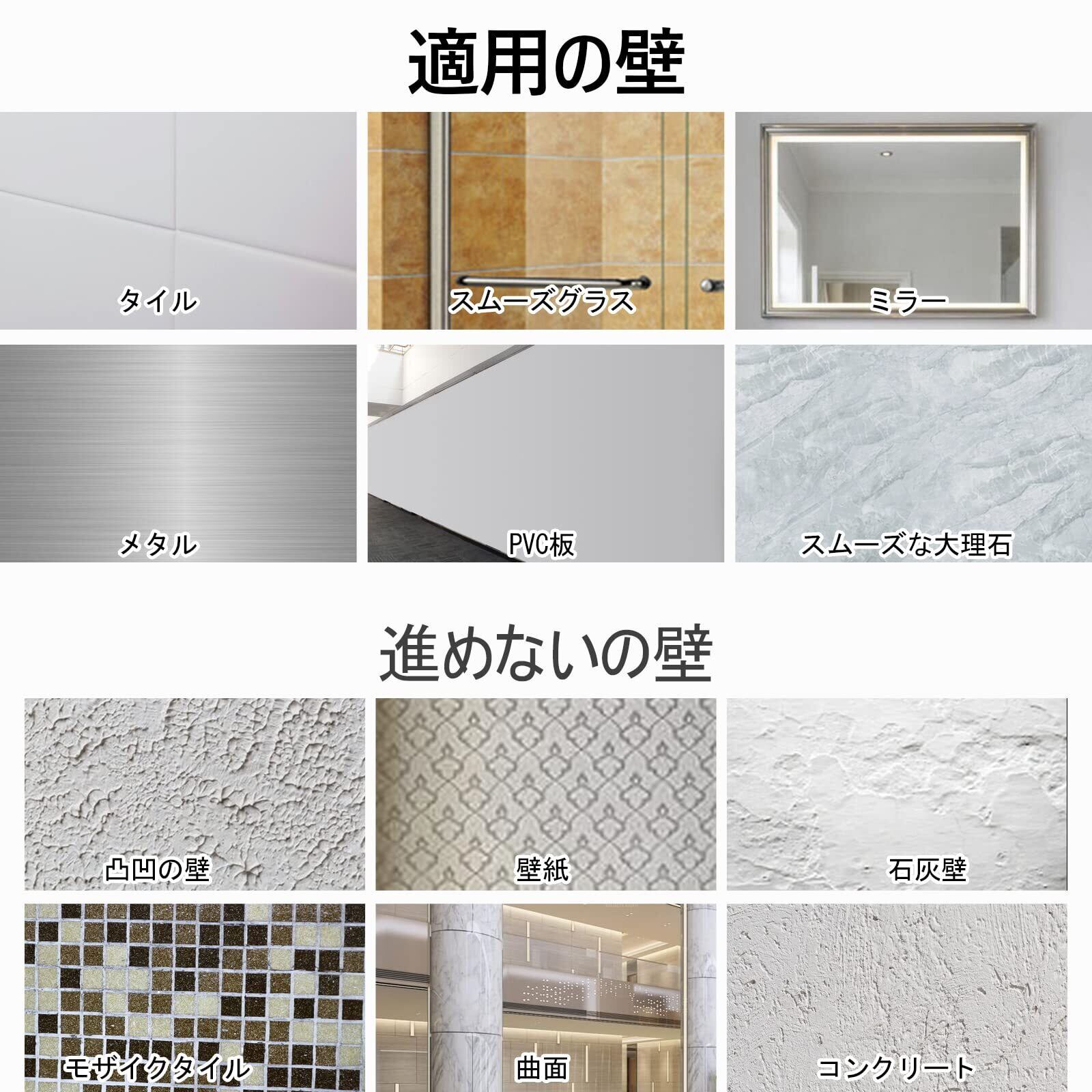 【取付けられる場所】キッチン、浴室、洗面台、ガレージ、寝室、バスルームなど平滑壁面に最適です。壁とのすき間があるので、タオルが壁につかず衛生的です。ご注意:お風呂場に貼る場合は、濡れたまま貼るとは剥がれくる可能性があるので、貼る面をしっかり乾燥させてから貼るようにしてください。