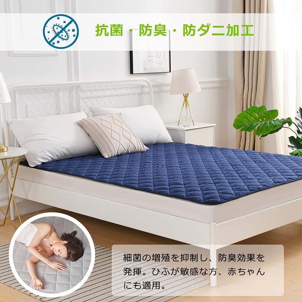 敷きパッド ワイドキング 吸汗通気 ベッドパッド オールシーズン 良いクッション性 柔らか 防臭防ダニ ベッドマット ベッドシーツ 丈夫な生地 ホコリ出ない 強化ゴムバンド付 洗える 200×200cm ネイビー