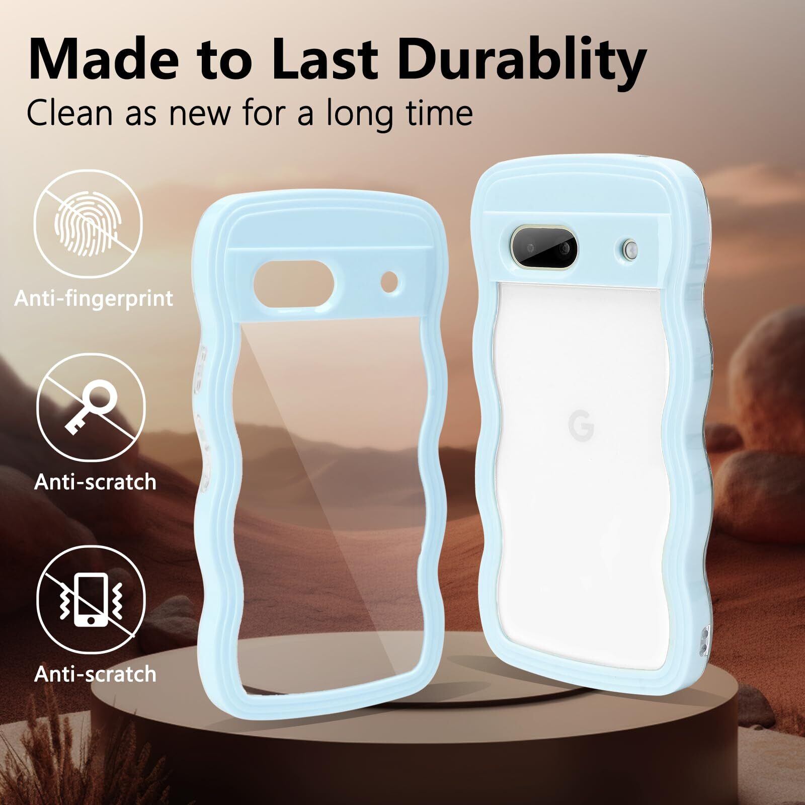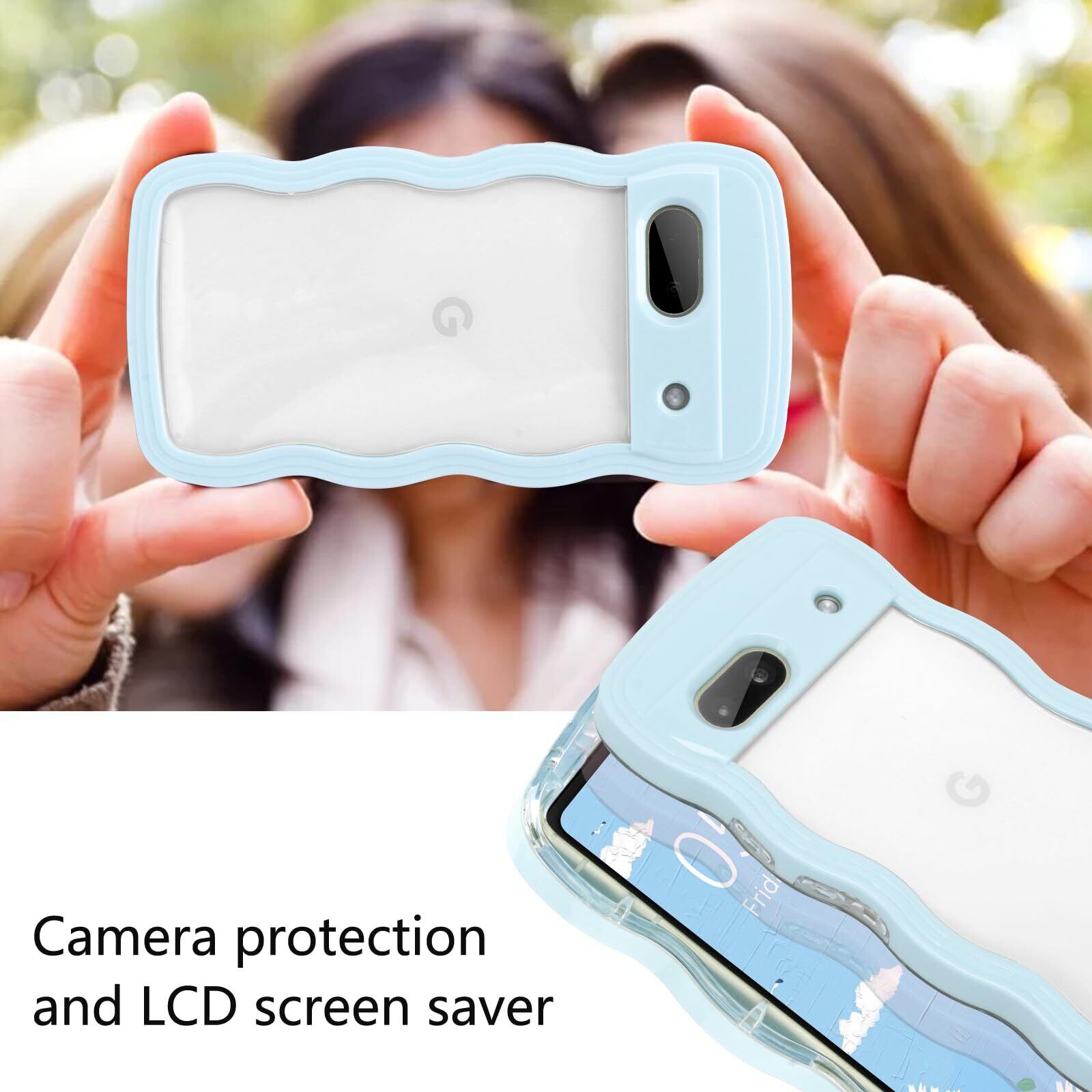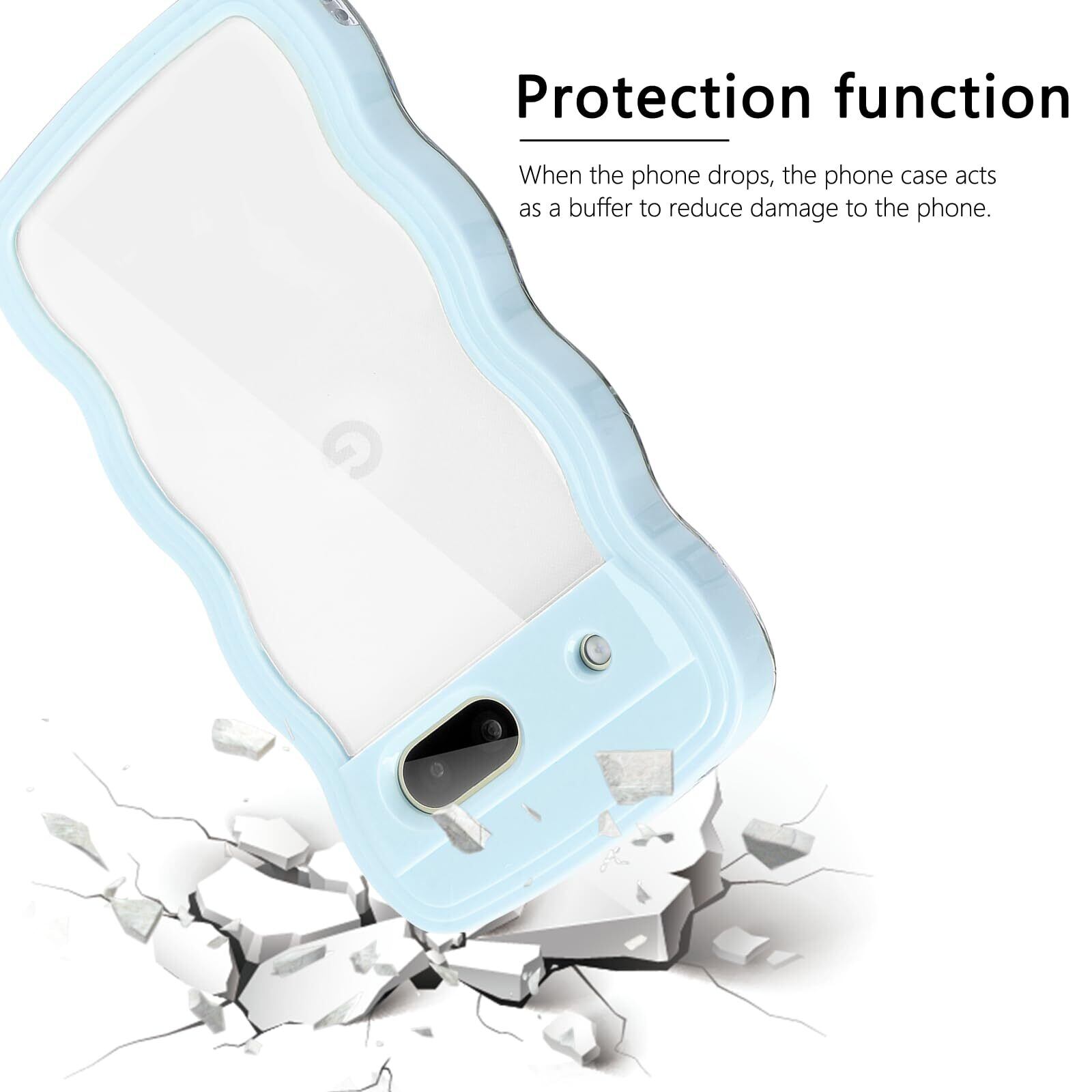 【Newnugds】Google Pixel6A ケース グーグルピクセル6A ケース 韓国 おしゃれ シンプル 波状エッジ 透明 2in1 pixel 6A ケース 創意 個性 超軽量 可愛い 女子向け Pixel6A スマホケース 指紋防止 擦り傷防止 全面保護 ピクセル6A ケース 耐衝撃 衝撃吸収 携帯ケース 人気Pixel6A ケース ライトブルー
