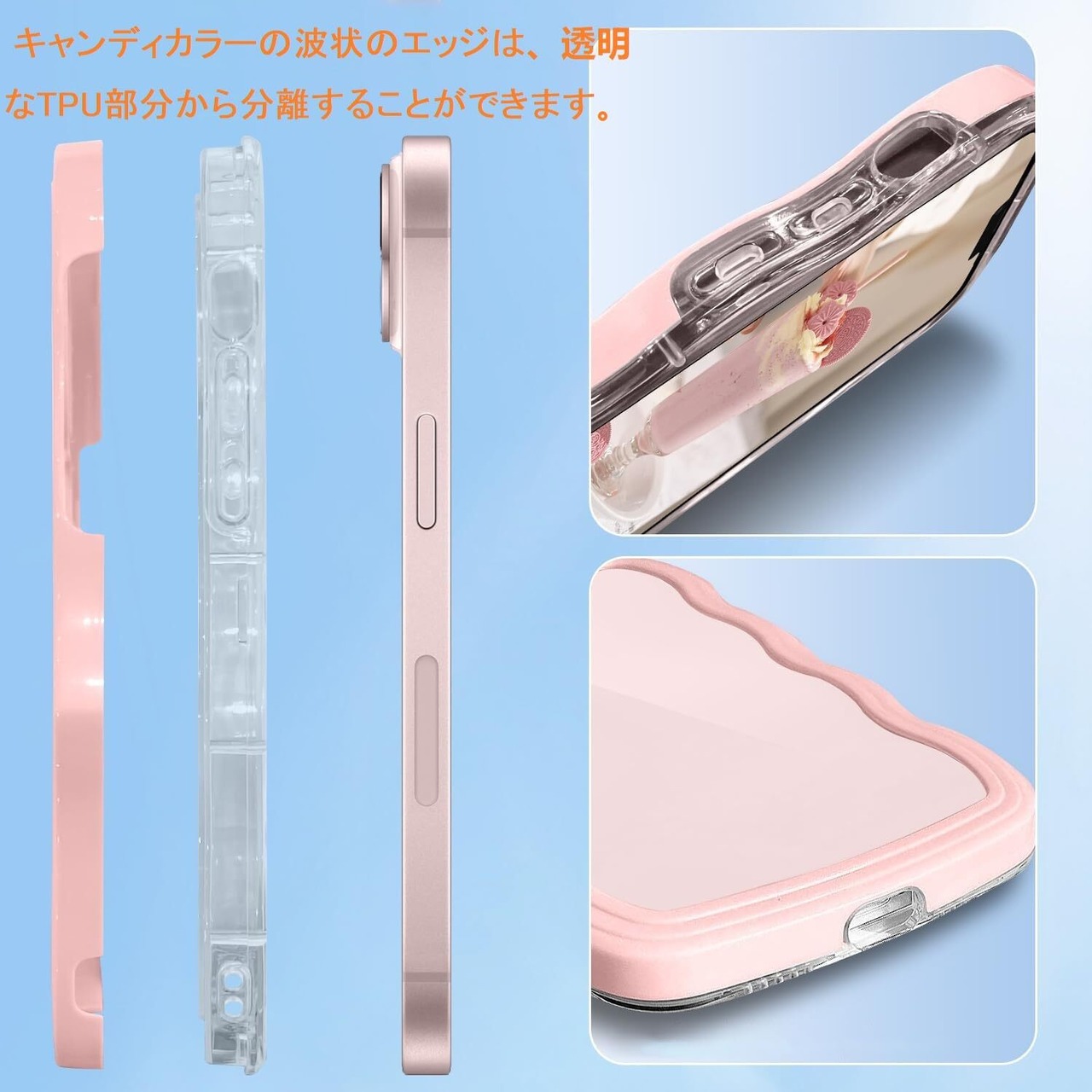 【対応機種】ご購入前に、お使いの携帯電話の正しいモデル/サイズ選択してください。当社のスマホケースの品質に問題がある場合は、お気軽に当社のカスタマーサービスにご連絡ください。可愛いTPU波状エッジソフトシェルケースはワイヤレス充電に対応しています。【注意】: キャンディカラーの波状のエッジは、透明なTPU部分から分離することができます。品質上の問題や破損ではなく、特別なデザインです!