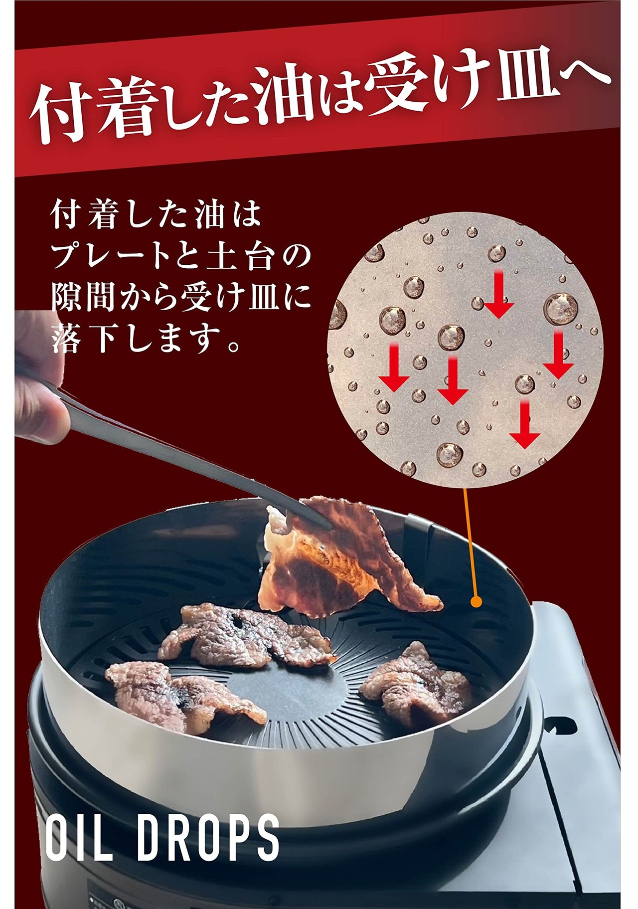 付着した油が外に漏れ出ることなく、受け皿に集まるため、後片付けが楽になります