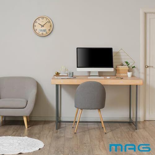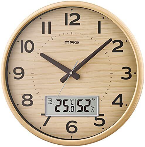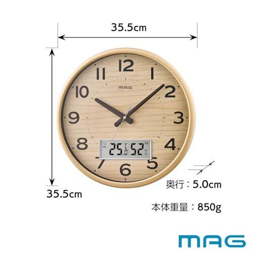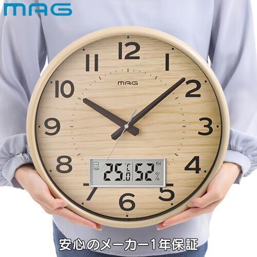 MAG(マグ) 掛け時計 電波時計 アナログ ゴーフル 温度 湿度 表示 夜間秒針停止機能付き ナチュラル W-776N-Z