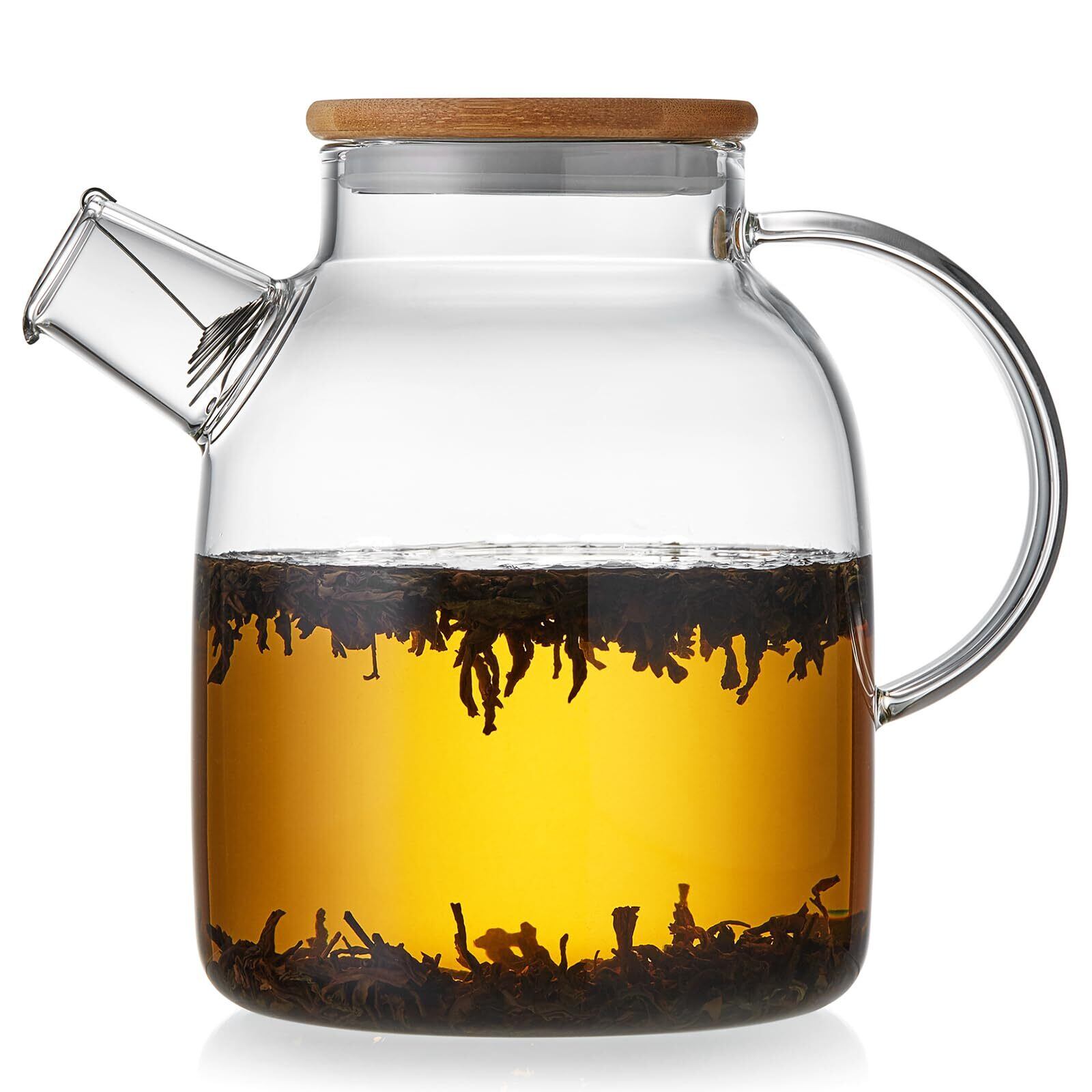 ポカロティー ガラスやかん 耐熱ガラス急須 ティーポット 大容量 1600ml 直火対応 竹製蓋 割れにくい 透明 筒型ガラス製ポット 紅茶 緑茶 フルーツティー リーフティー 茶こし付き 後ろ手型持ち手 1.6L