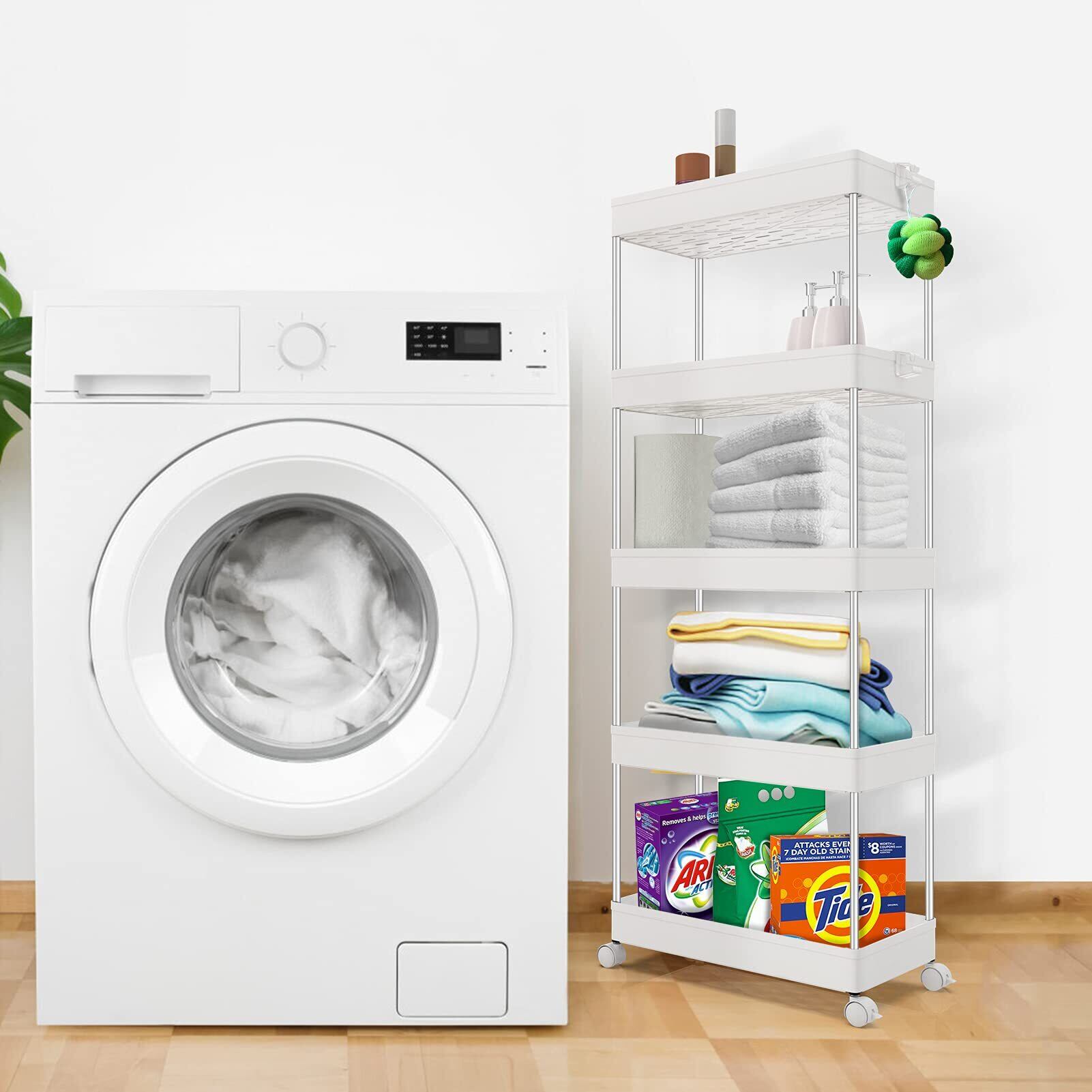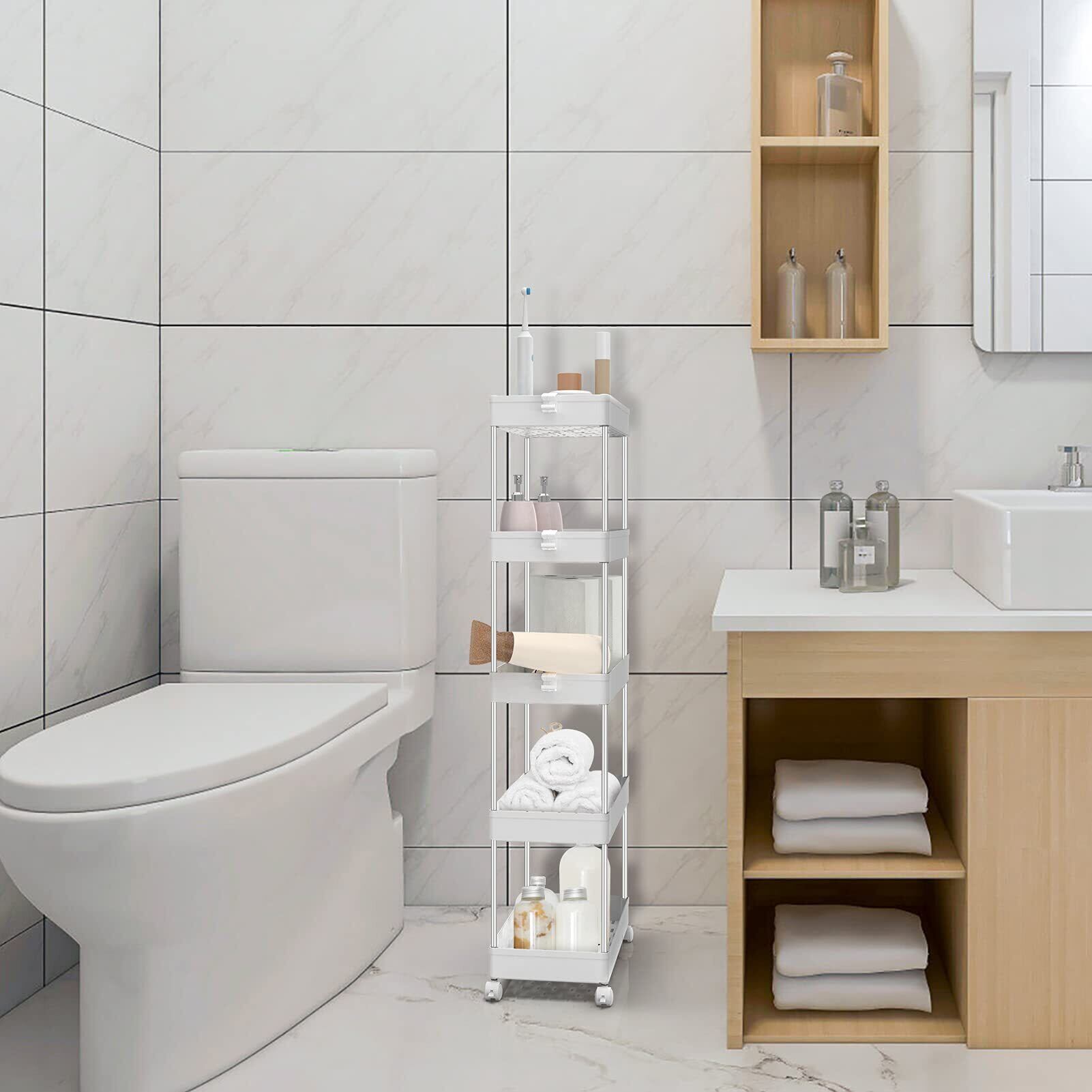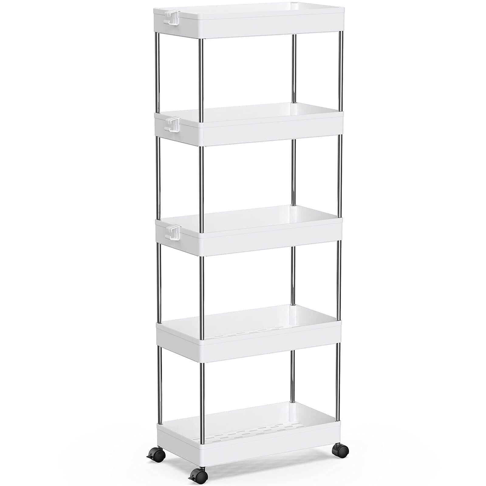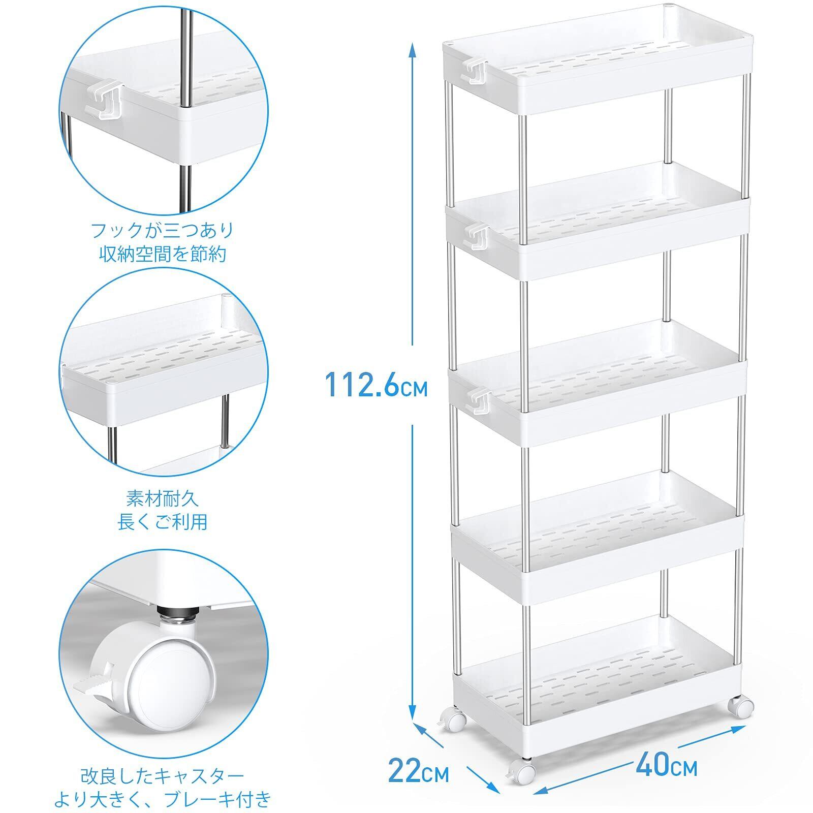 SPACEKEEPER キッチンワゴン スリム 隙間収納 22cm 収納ラック キャスター付き 収納カート ローリングラック おしゃれ 調味料 食品 ペットボトル 小物 台所 洗面所 冷蔵庫横 5段 ビッグ ホワイト