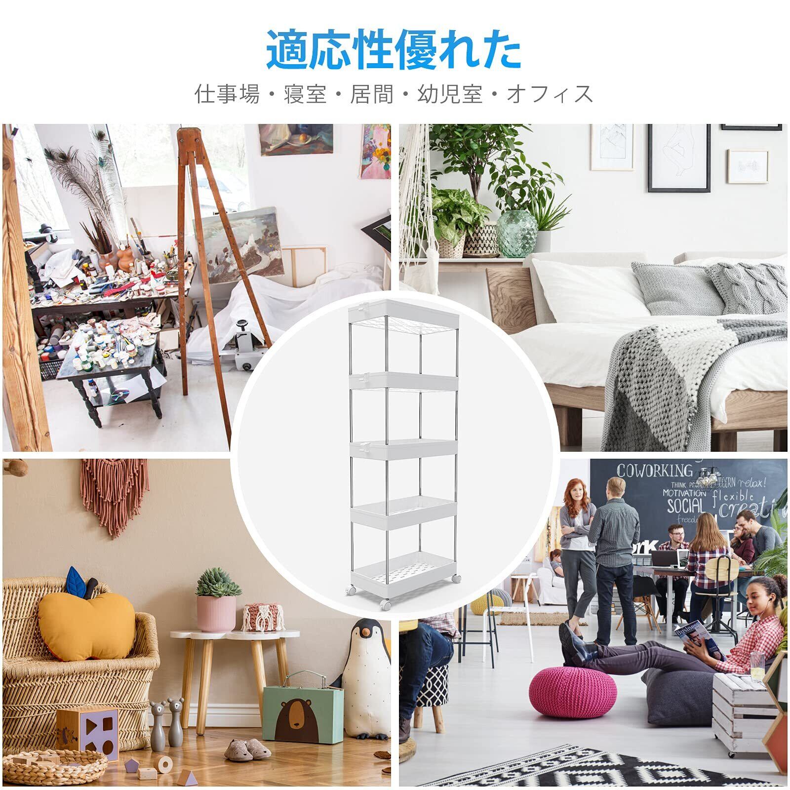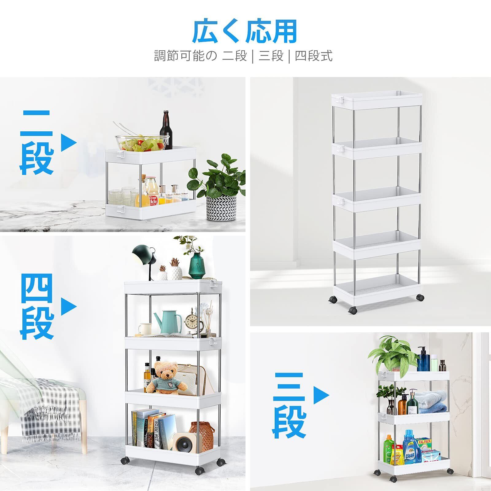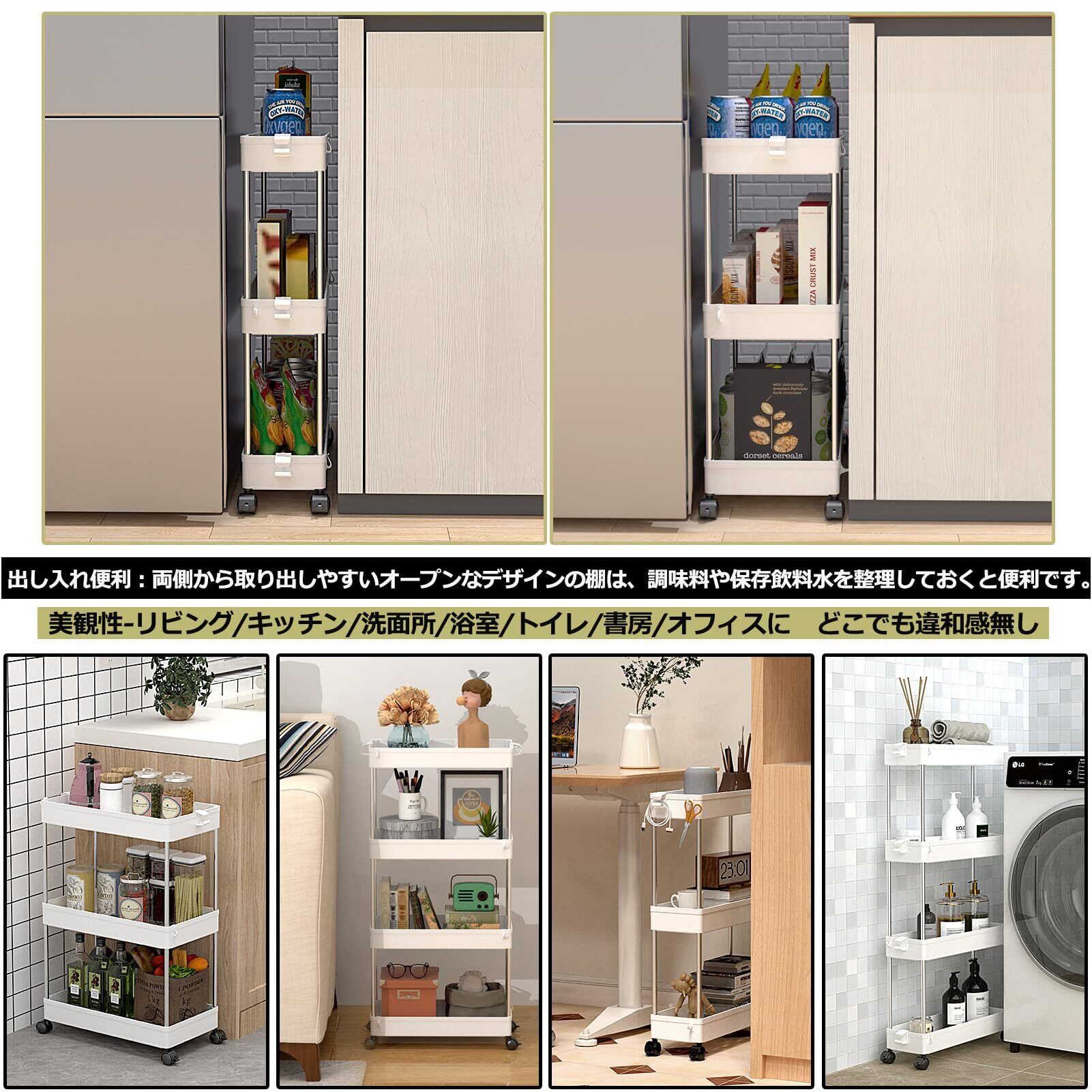 【高品質の家庭用収納 ワゴン】高級な材質は採用なので、高い安定性を誇ります。スリムボディーをして、部屋の隙間に自在に配置されています。トイレ収納、ベッドルーム、居間、子供部屋、キッチン、書店、美容室などの使用に最適して、収納力は抜群です。いろんなシーンで大活躍なキッチンワゴンです。