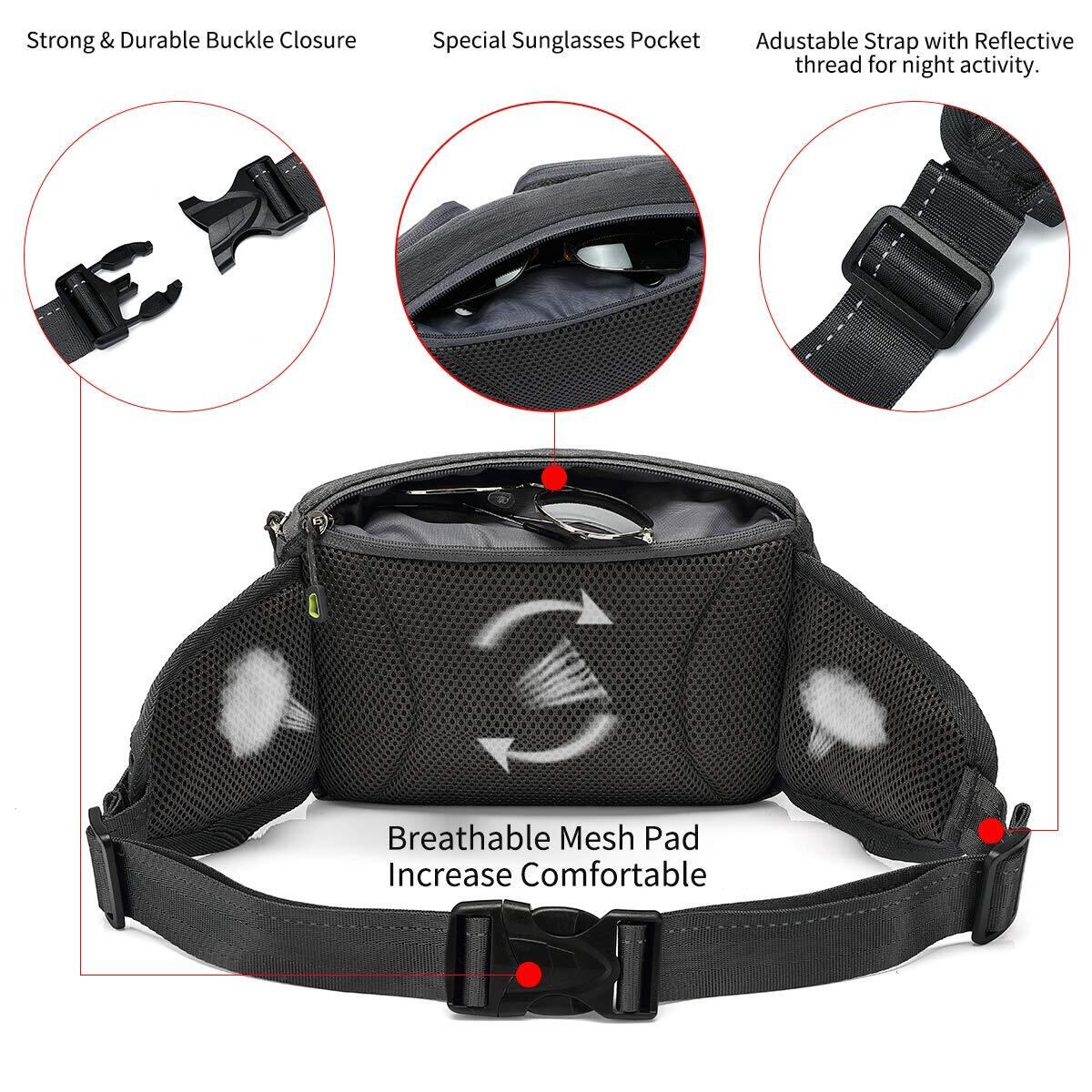 TUDEQU ウエストポーチ メンズ 大容量, 2つの隠れボトルホルダー ウエストバッグ, ヒップバッグ,犬 散歩ウエストポーチ,ボディバッグ,登山ポーチ,ランニング ポーチ,犬 お散歩バッグ