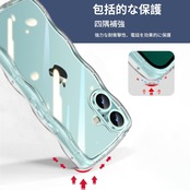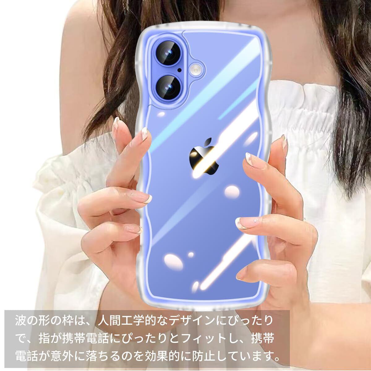 iPhone 16 用 ケース クリア 波状フレーム 耐衝撃 アイフォン 16 用 スマホケース かわいい 人気 可愛い 女性用 カバー 滑り止め ワイヤレス充電対応 ストラップホール付き ストラップ1種付き (クリア 透明)