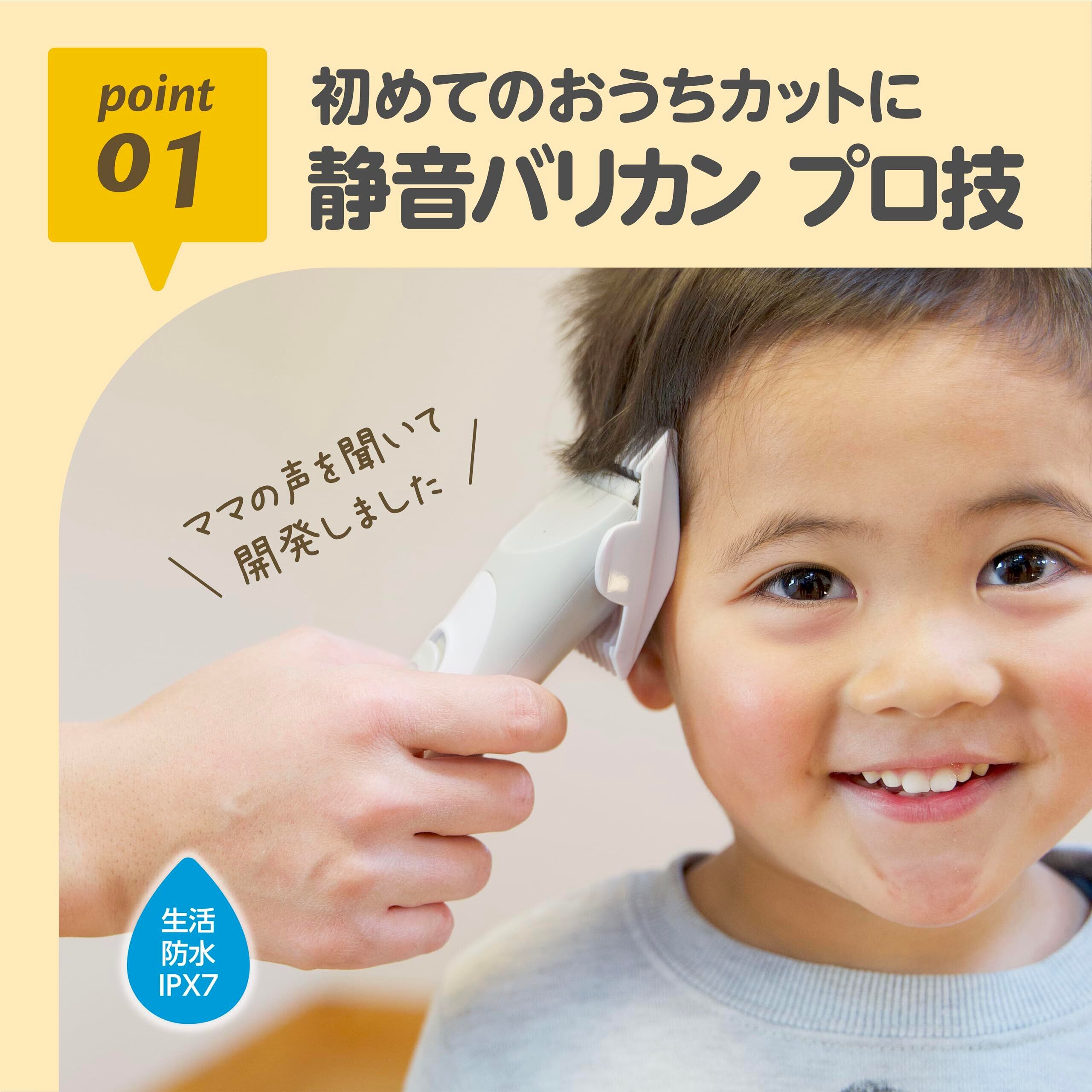 静音モーター内臓の静かなバリカン。バリカンの音が怖い!という大きな音が苦手なお子様でも安心してお使いいただけます。