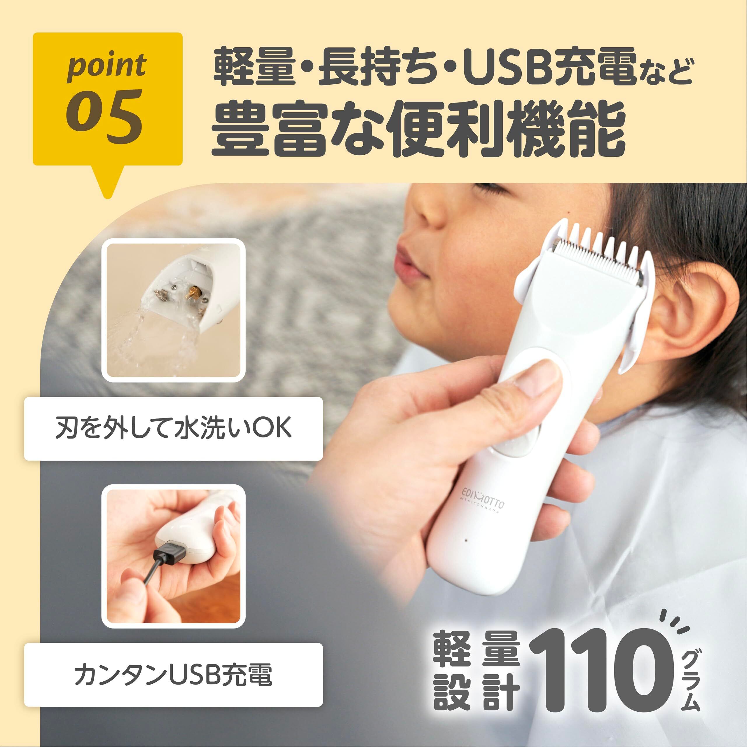 EDISONmama(エジソンママ) 静音バリカン プロ技 図書館並みに静か 3種類6段階のアタッチメント スキンケア&バス用品 ヘアケア用品 髪 カット 子ども用 キッズ
