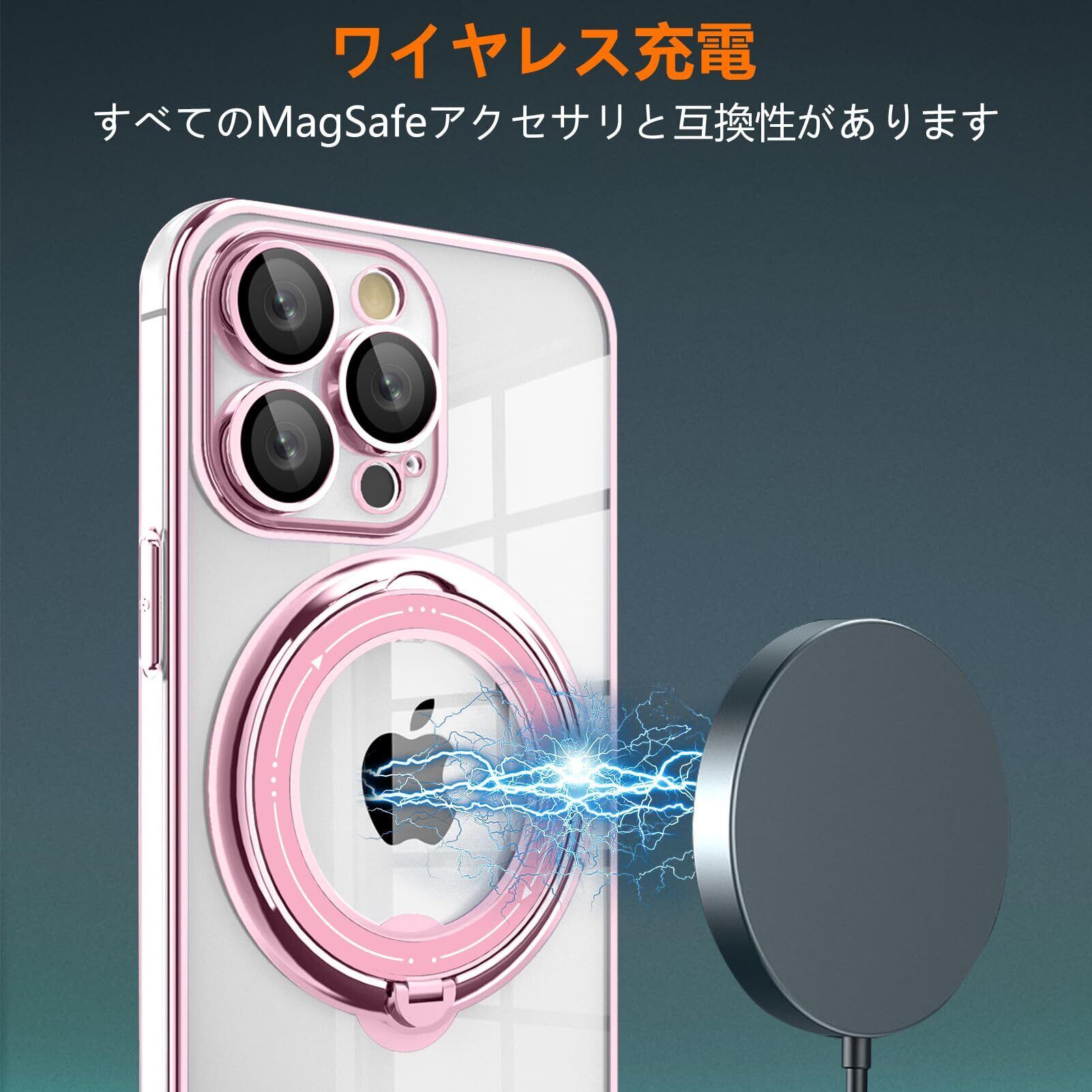 iPhone 15 用 ケース リング付き クリア磁気ケース 耐衝撃 Magnetic 対応 レンズフィルム 高透過率 スタンド機能 角度調整可能 透明 TPU 指紋防止 落下防止 防塵 薄型 軽量 一体型 変形防止 全面保護カバー アイフォン用 ケース ピンク W-DDCX-48-02