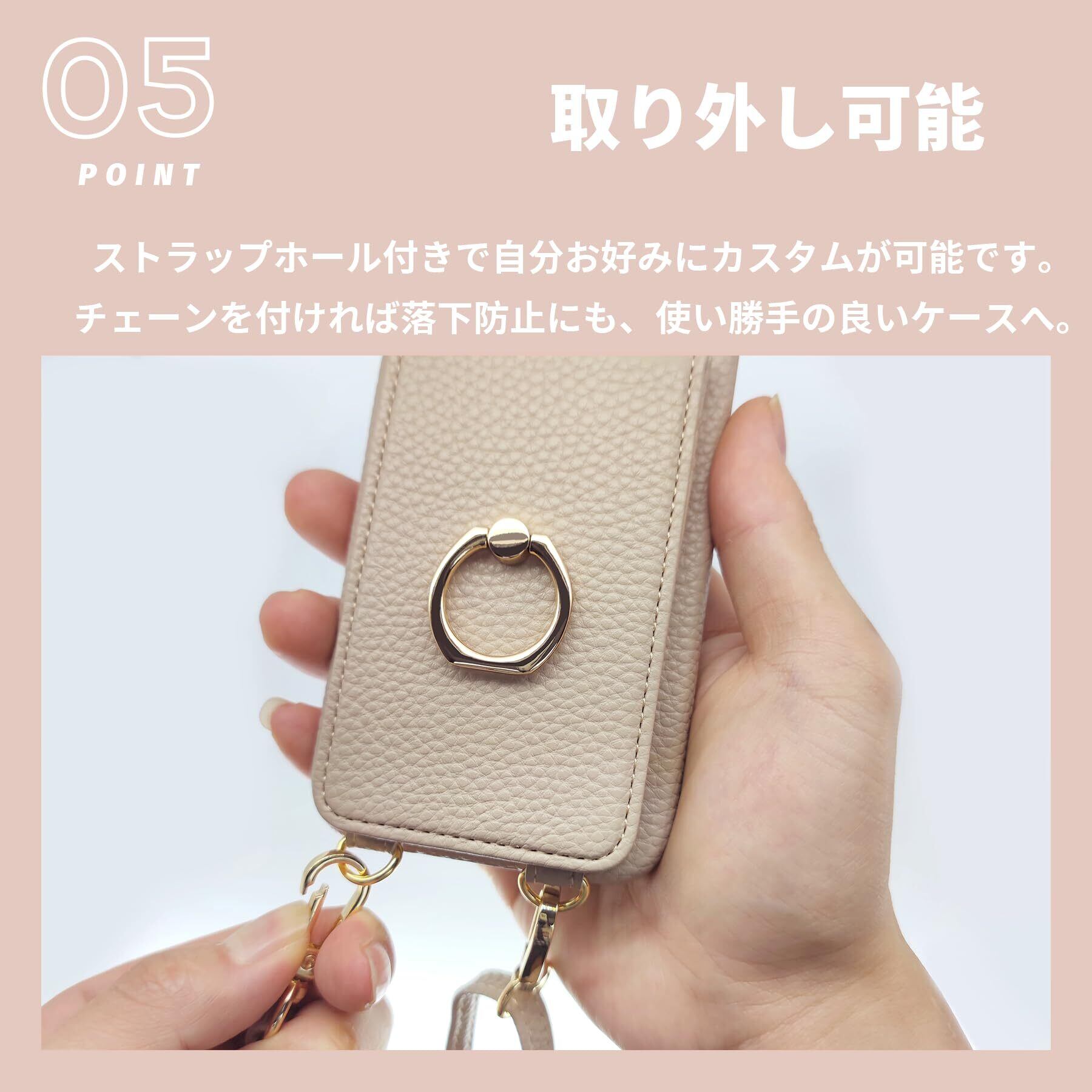 【リング付き】ストラップホール付きで自分お好みにカスタムが可能です。チェーンを付ければ落下防止にも、使い勝手の良いケースへ。カバンやポケットから出し入れするのもらくらくに。