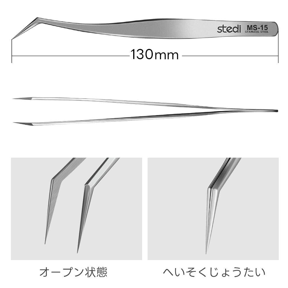 Stedi 模型用ピンセット 先曲がりピンセット精密仕上げ カーブタイプ 材質ステンレス 全長130mm 先端幅0.5mm