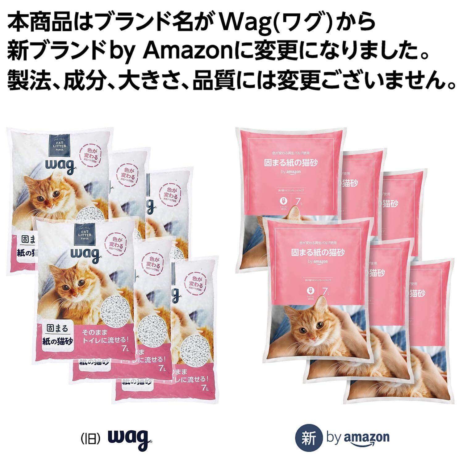 by Amazon 紙の猫砂 7L×6袋 42L 無香料 (Wag)