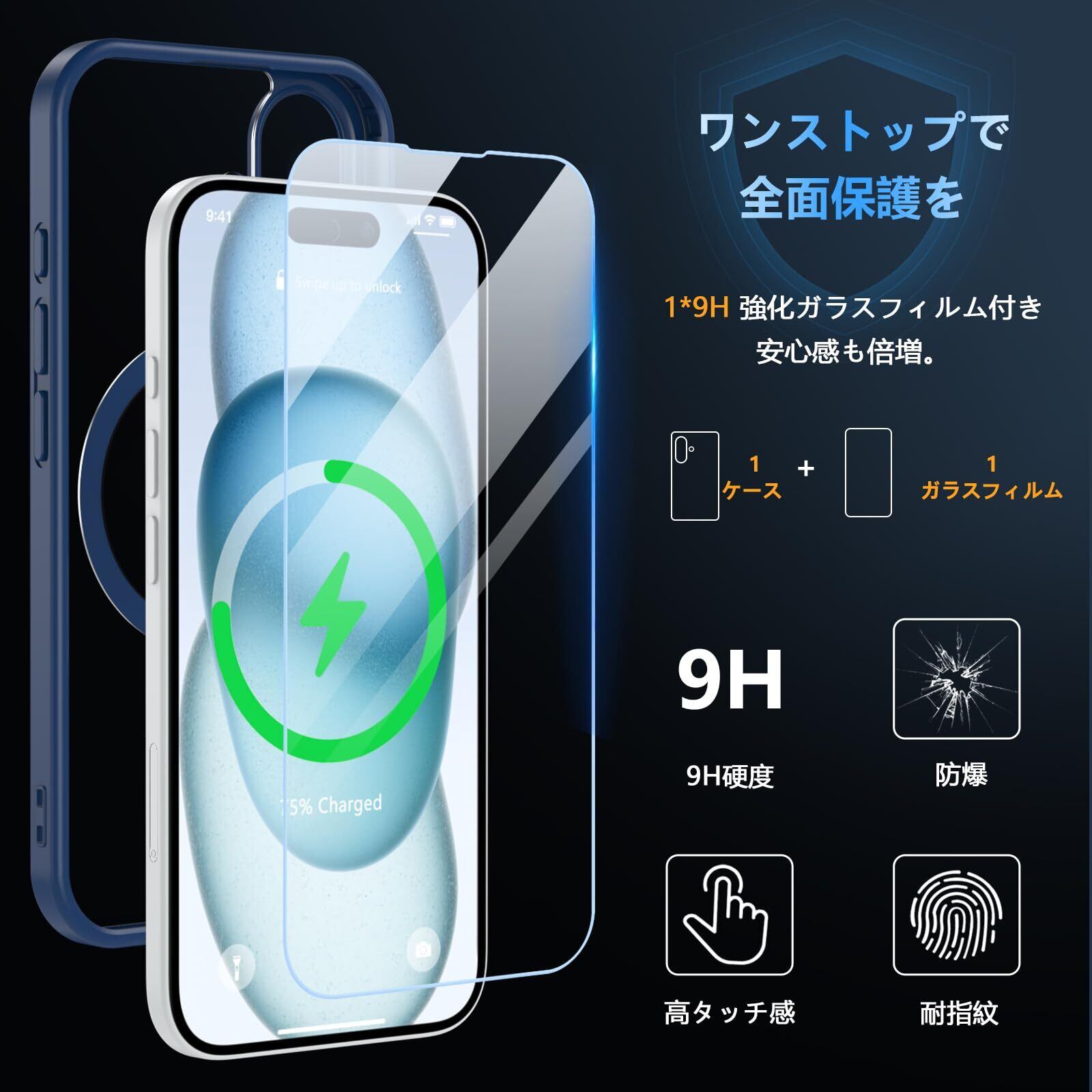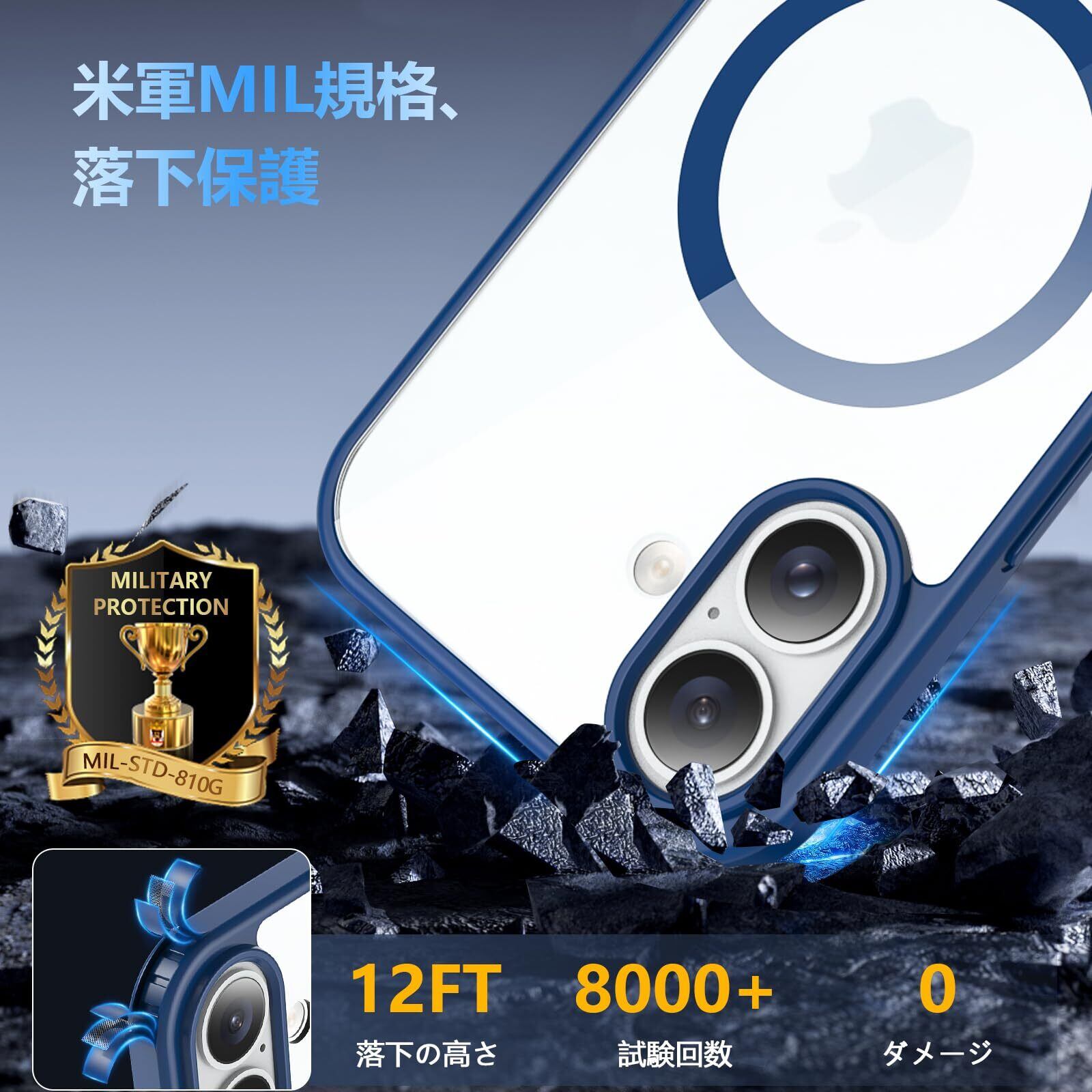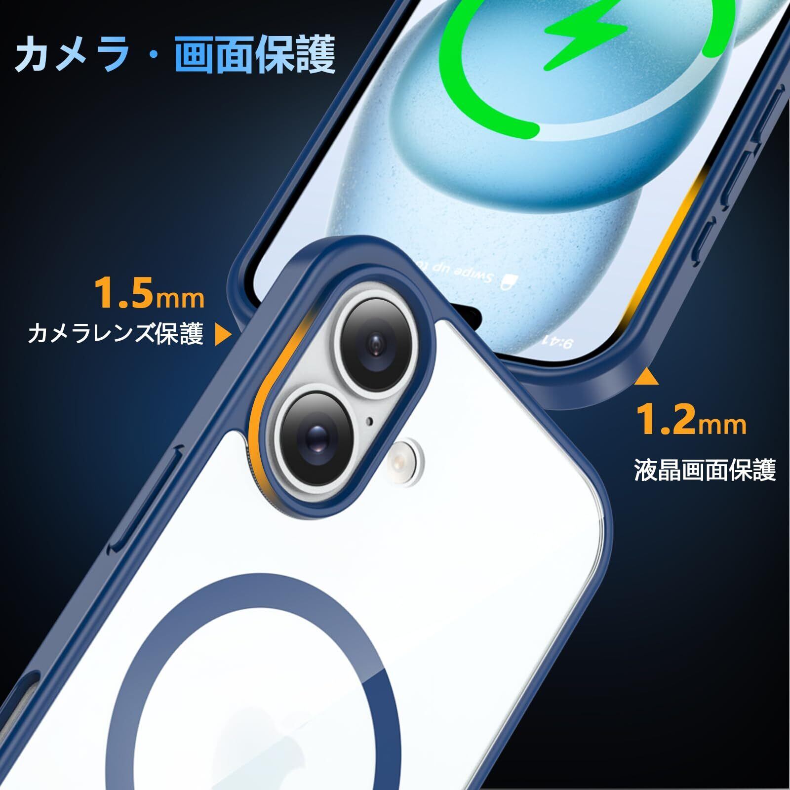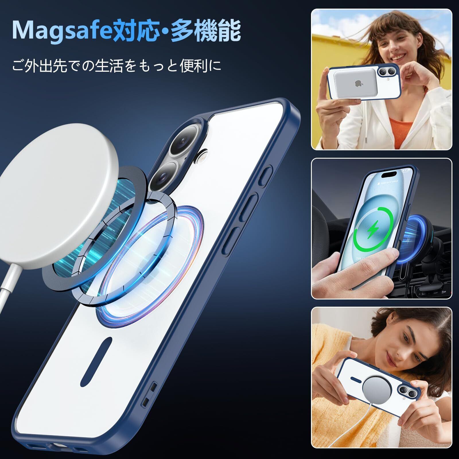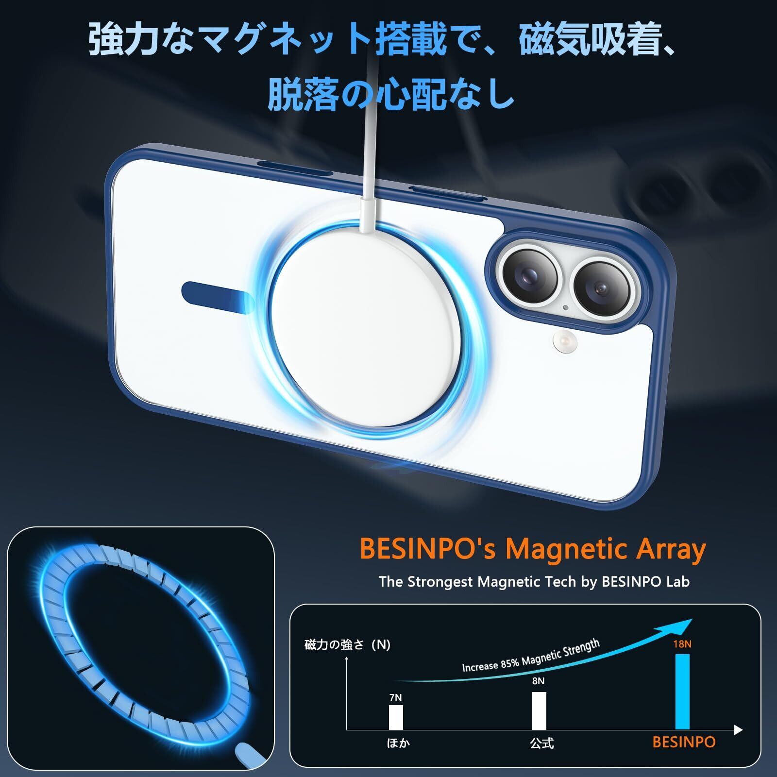 iPhone 16 ケース アイフォン16ケース BESINPO【ガラスフィルム付き・MagSafe対応】クリア iphone16ケース 黄ばみなし ストラップホール いphone16 ケース 米軍MIL規格 耐衝撃 耐久性 iphone 16 スマホケース マグネット搭載 マグセーフ対応 iPhone 16 ケース 6.1インチ ブルー+クリア