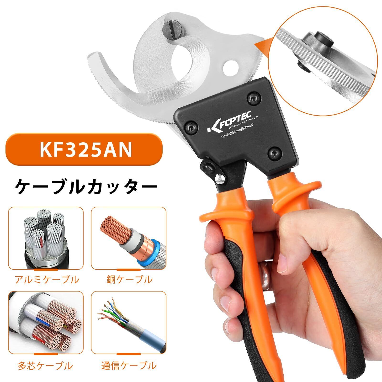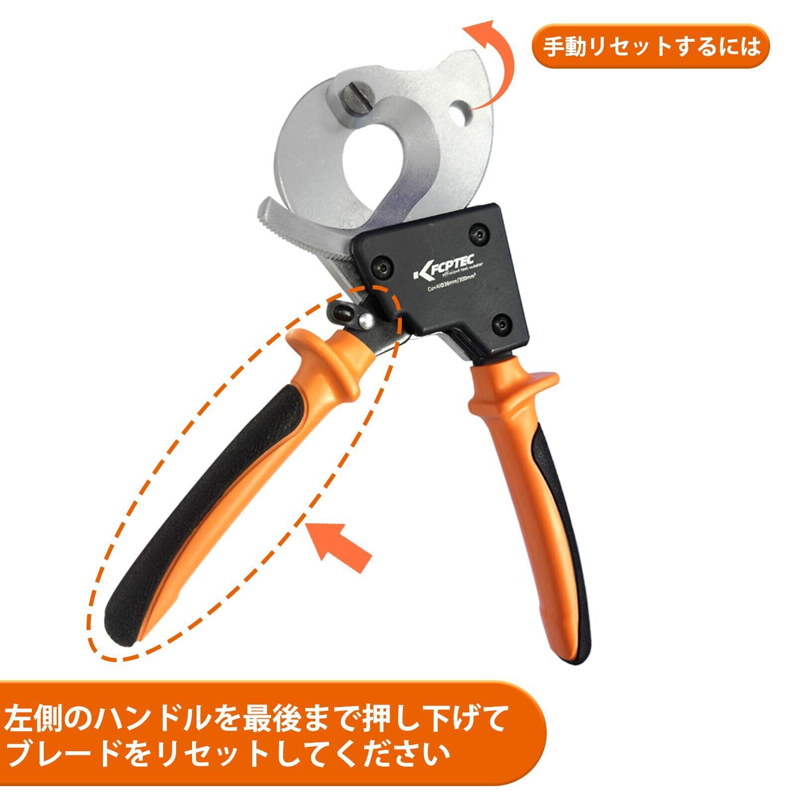 KF CPTECプロ用ラチェット式ケーブルカッター【最大300mm²対応】- 多機能高耐久アルミニウム及びマルチコアケーブル適用、作業効率向上