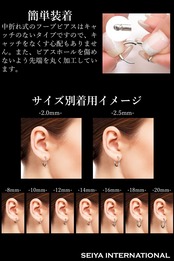 【 キャッチ不要でワンタッチ取付 】中折れ式のフープピアスはキャッチのないタイプですので、キャッチをなくす心配もありません。ポスト(針)が外に出ないので安心で引っかかりがなく、付け外しが簡単で先端を丸くしてあるのでピアスホールが痛みにくくすっきりしていておしゃれです。自分用はもちろん、彼氏、彼女や旦那様、奥様、友達など男性、女性への誕生日やクリスマス、バレンタインデー、ホワイトデーなどの記念日のプレゼントにもおすすめです。カップルや友達でシェアなどの使い方もおすすめです。