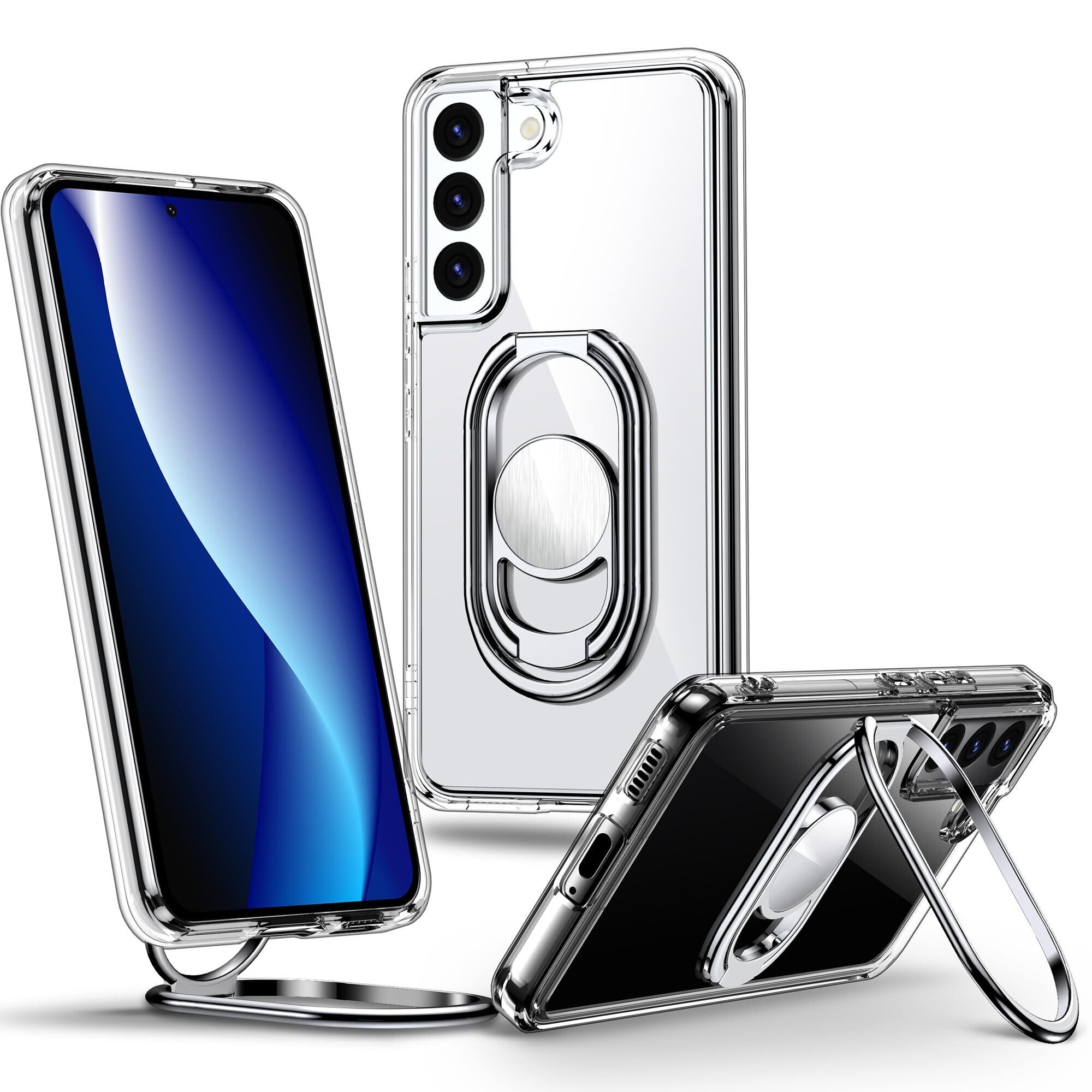 Rockaway Galaxy S22 ケース リング スタンド機能 角度調節可能 折り畳み 落下防止 耐衝撃 SC-51C SCG13 カバー ギャラクシーS22 スマホケース - クリア